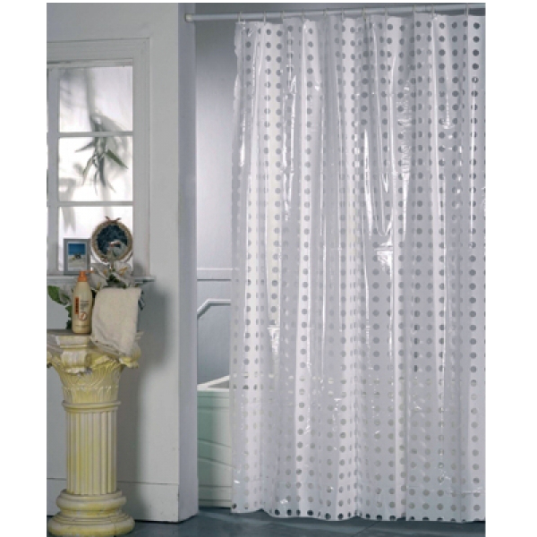 MEGALANT ZUHANYFÜGGÖNY PVC, 180X200 CM WHITE ROUNDS, KARIKÁVAL