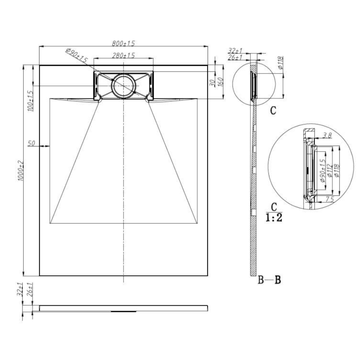 A Sanotechnik SMC zuhanytálca 80×100×2,6 cm méretben modern, aszimmetrikus kialakításával és kőhatású fekete felületével stílusos és praktikus választás minden korszerű fürdőszobába. A méretre vágható kivitel maximális rugalmasságot biztosít a beépítés során, így könnyen illeszthető egyedi téradottságokhoz is.