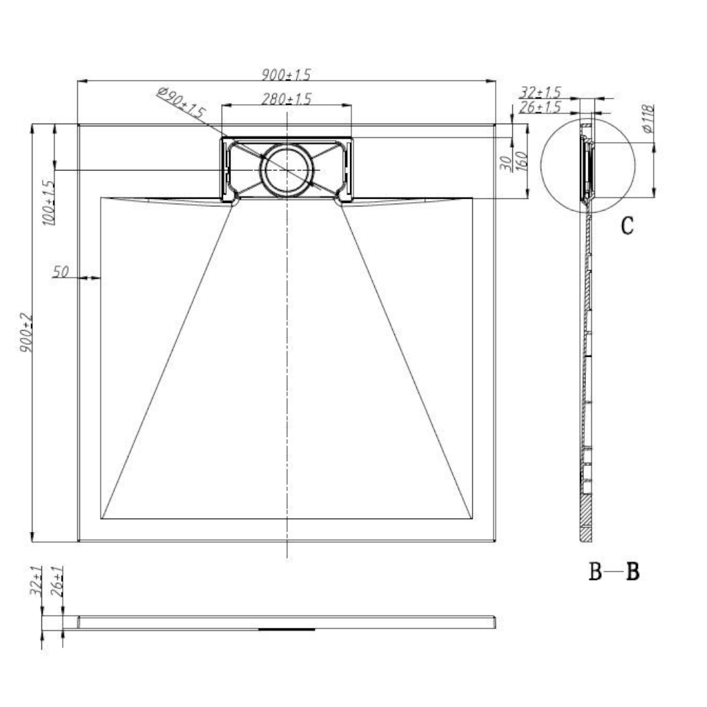 – Méret: 90 × 90 cm