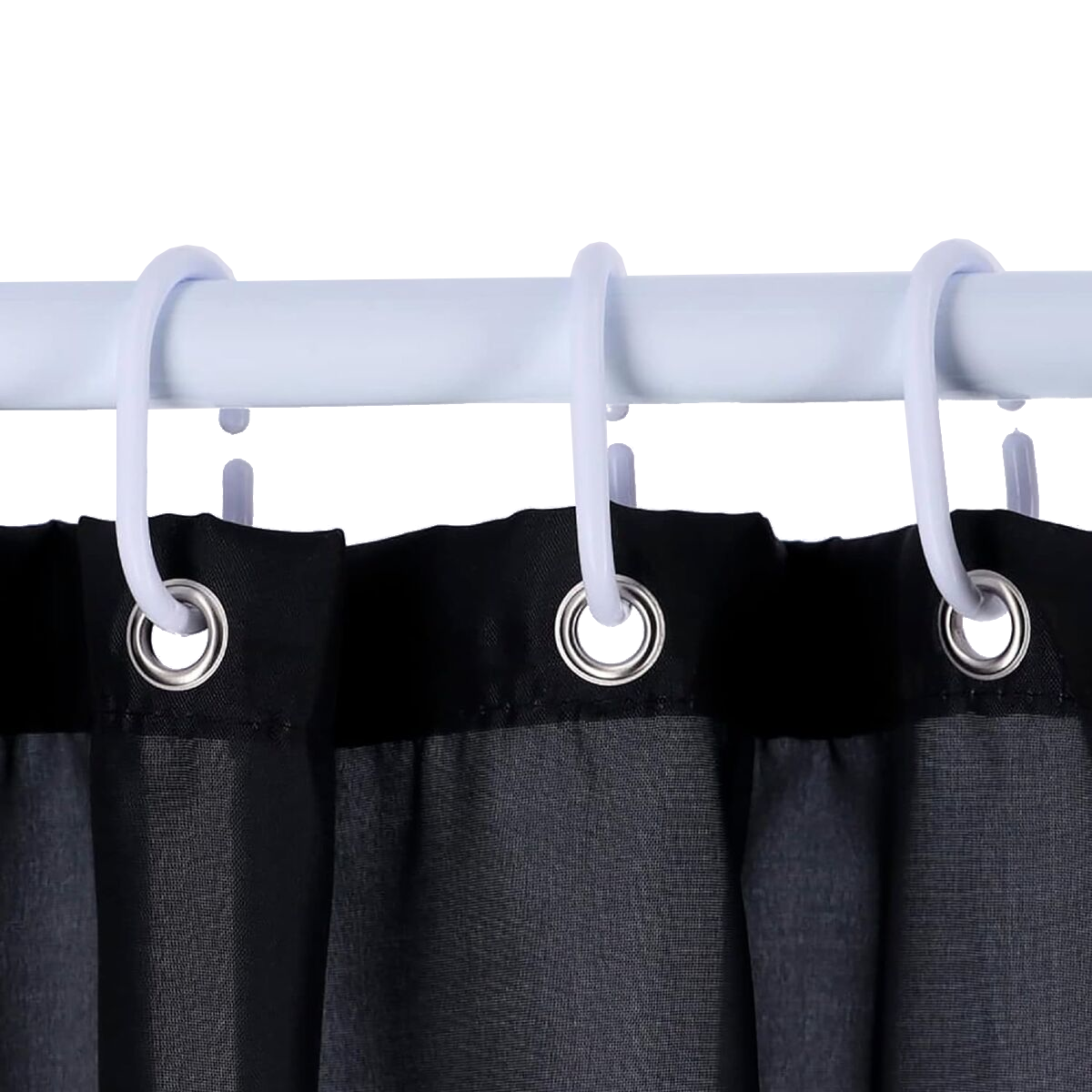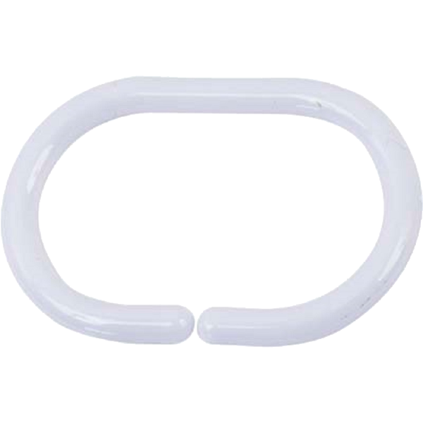 Fehér zuhanyfüggöny karika. 12 darab található egy csomagban. Színe miatt könnyen beilleszkedik bárki fürdőszobájába.