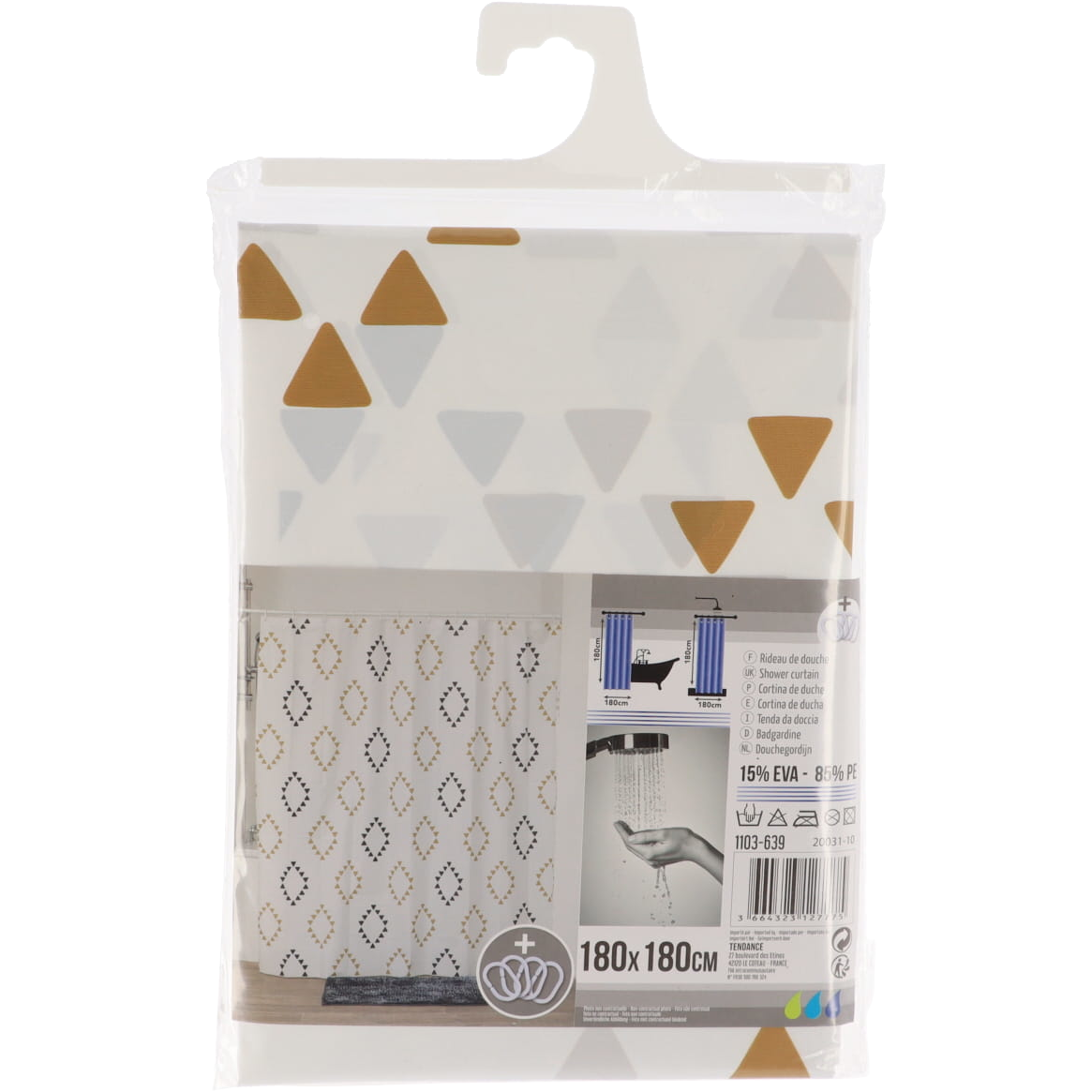 TENDANCE ZUHANYFÜGGÖNY PEVA 180X180CM ROMBUSZ MINTÁS 12 DARAB KARIKÁVAL