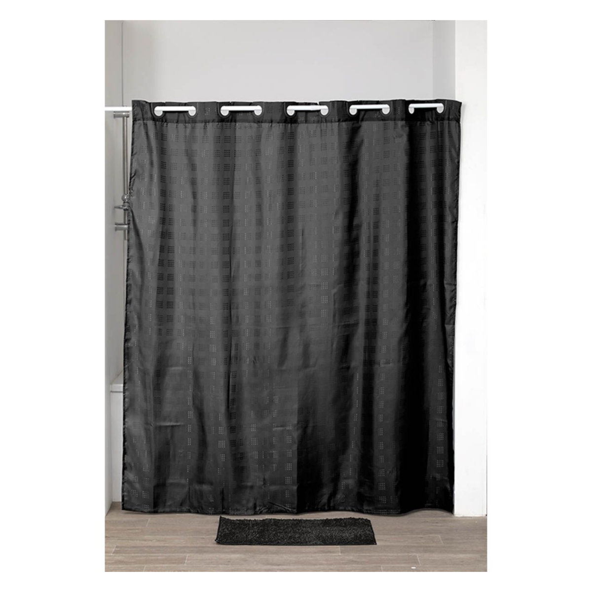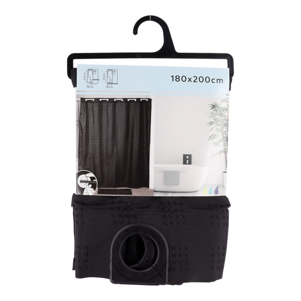Zuhanyfüggöny poliészter 180x200cm fekete, integrált karikával