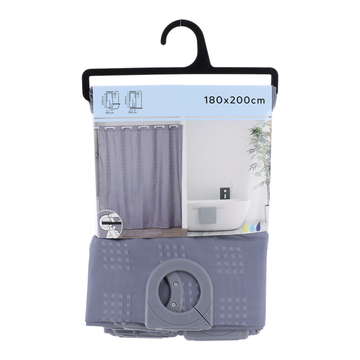 Zuhanyfüggöny poliészter 180x200cm szürke, integrált karikával