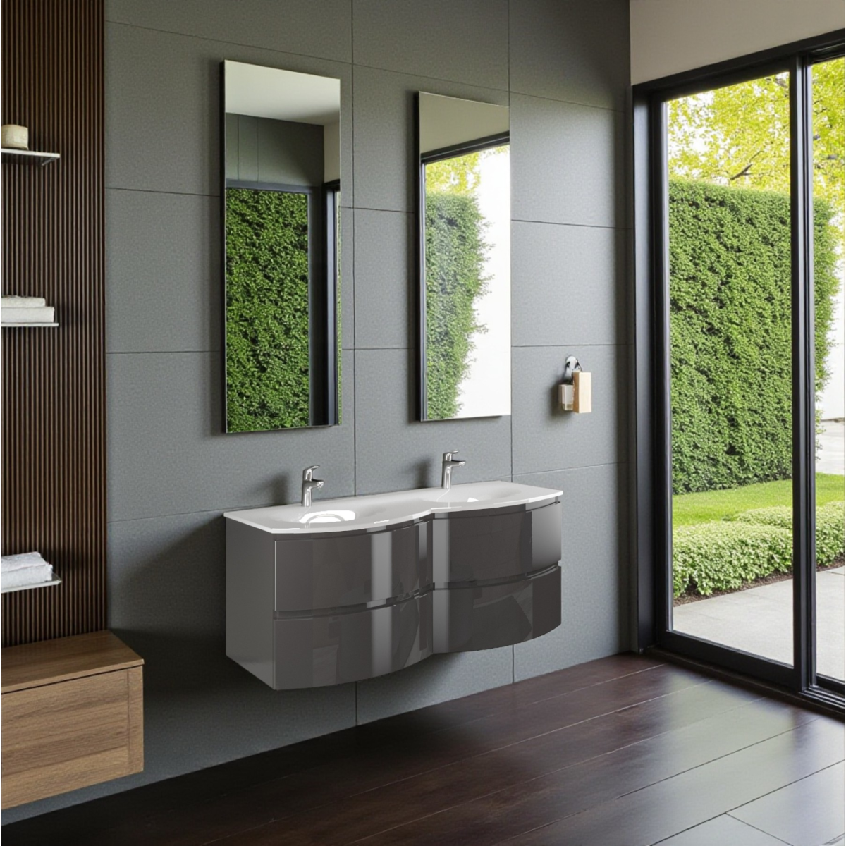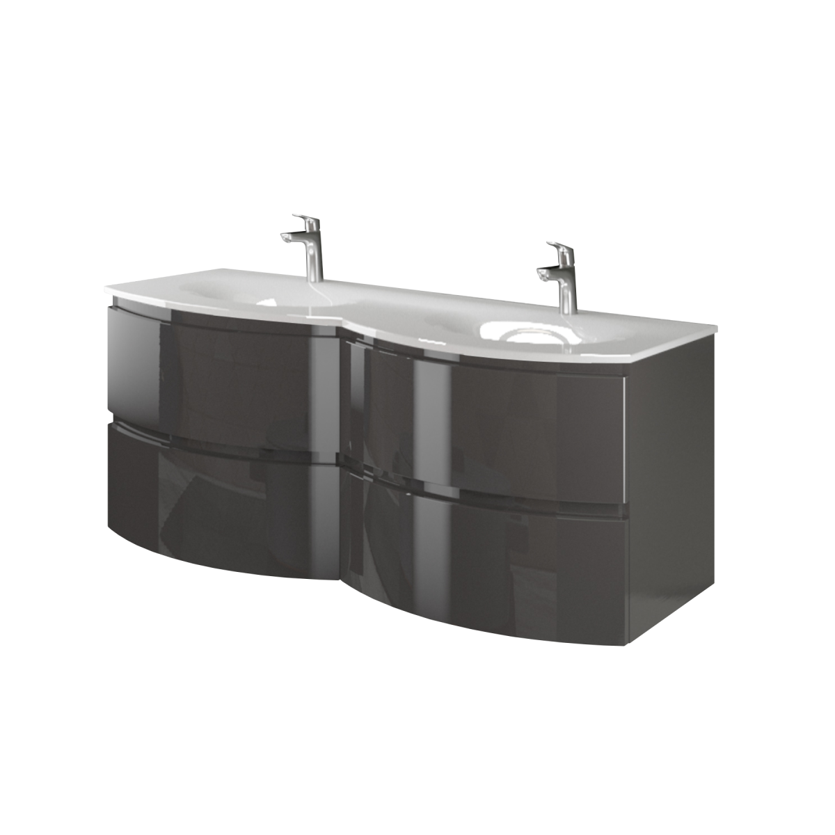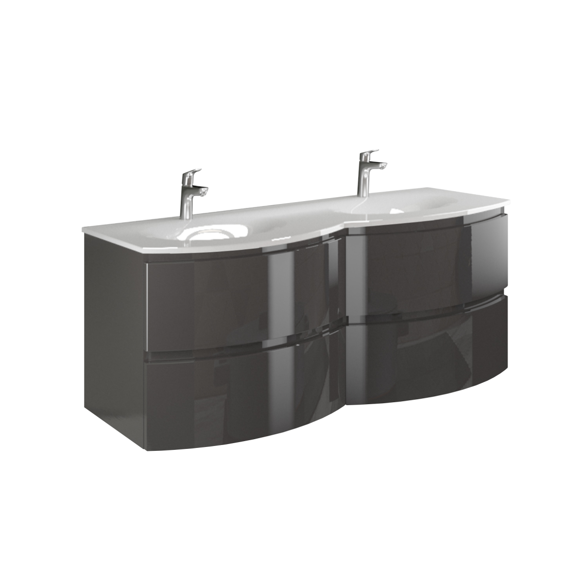 Az Armonia kollekció dupla mosdós, magasfényű antracit alsószekrénye különleges stílust és modern kényelmet hoz fürdőszobádba – igazi központi elemmé téve a teret.