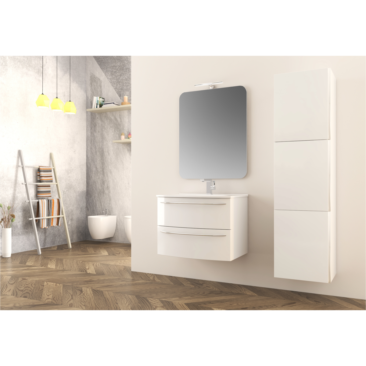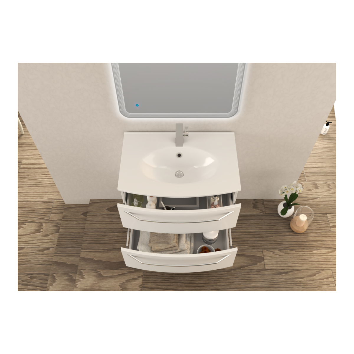 Letisztult, fehér mosdószekrény kompakt méretben. Praktikus választás kisebb fürdőszobákba is, a 55×74×51 cm-es kialakítás könnyen elhelyezhető és jól kombinálható más fehér fürdőszobai elemekkel.
