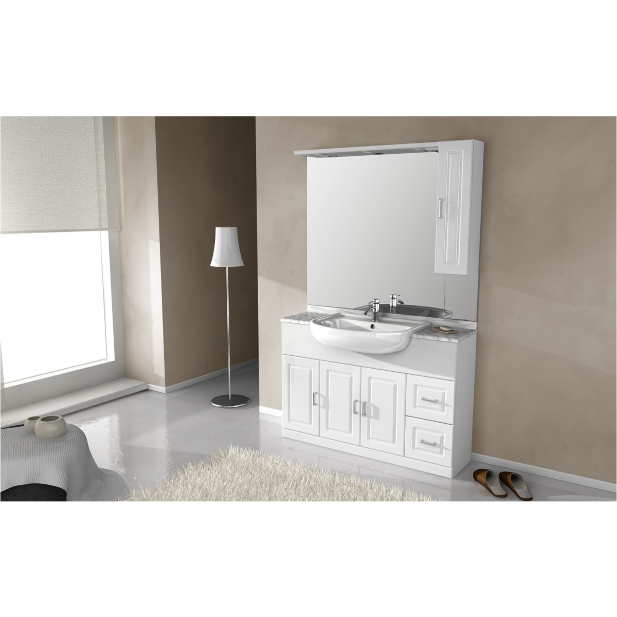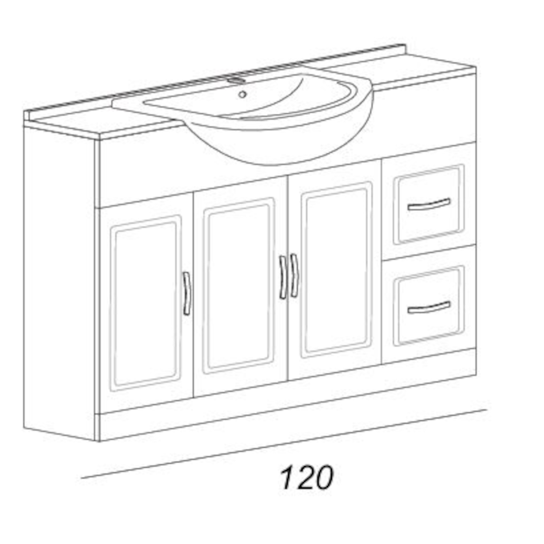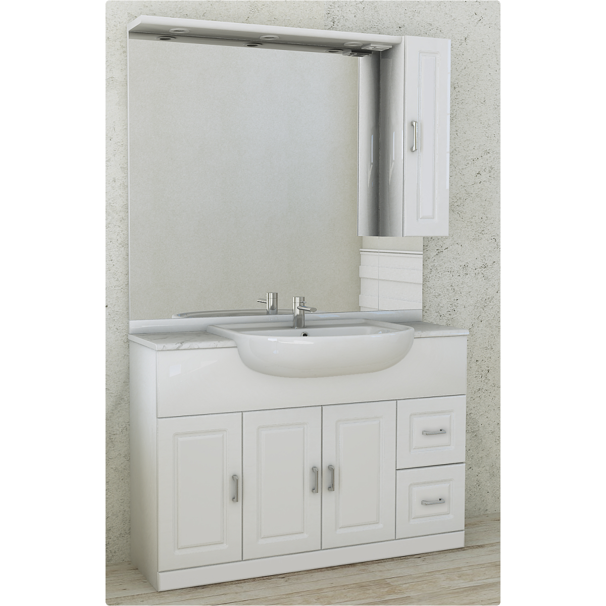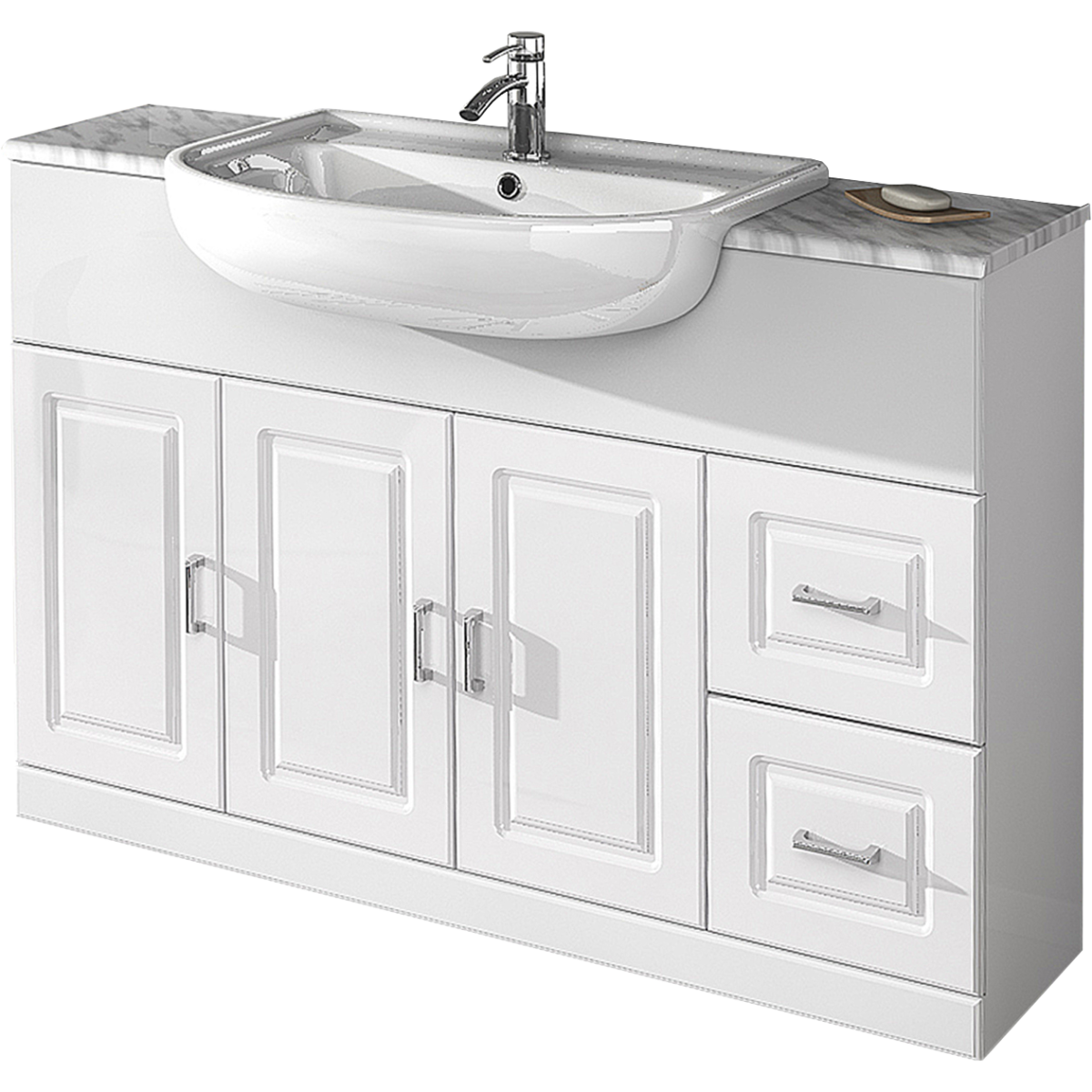 A Paola fürdőszobabútor praktikus és stílusos megoldás közepes és nagyobb méretű fürdőszobákba. A nagyméretű alsószekrény, a márvány mosdólap és a beépíthető kerámia mosdó kombinációja időtálló megjelenést és kényelmes használatot biztosít.