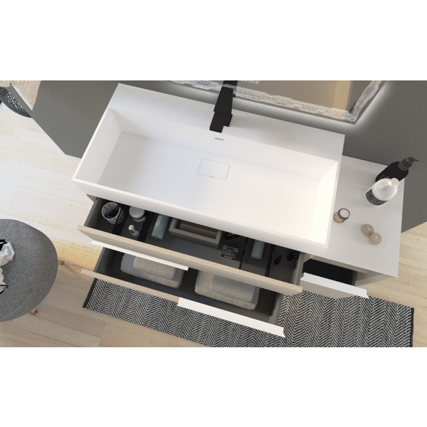 Space függesztett fiókos mosdóalsószekrény, szálcsiszolt, fehér színben.