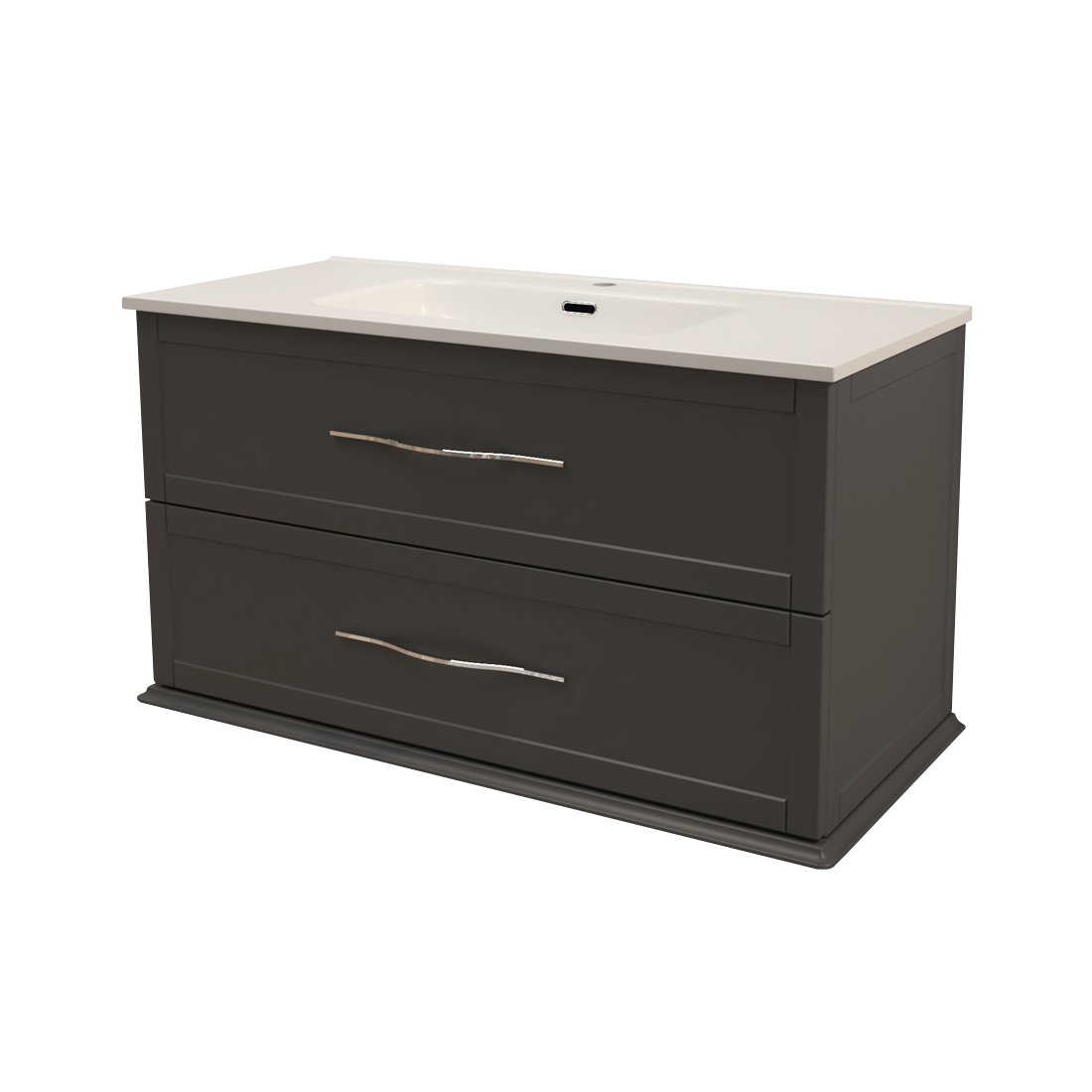 A Tiffany fürdőszobabútor klasszikus és modern stíluselemeket ötvöz, elegáns grafitszürke színben.