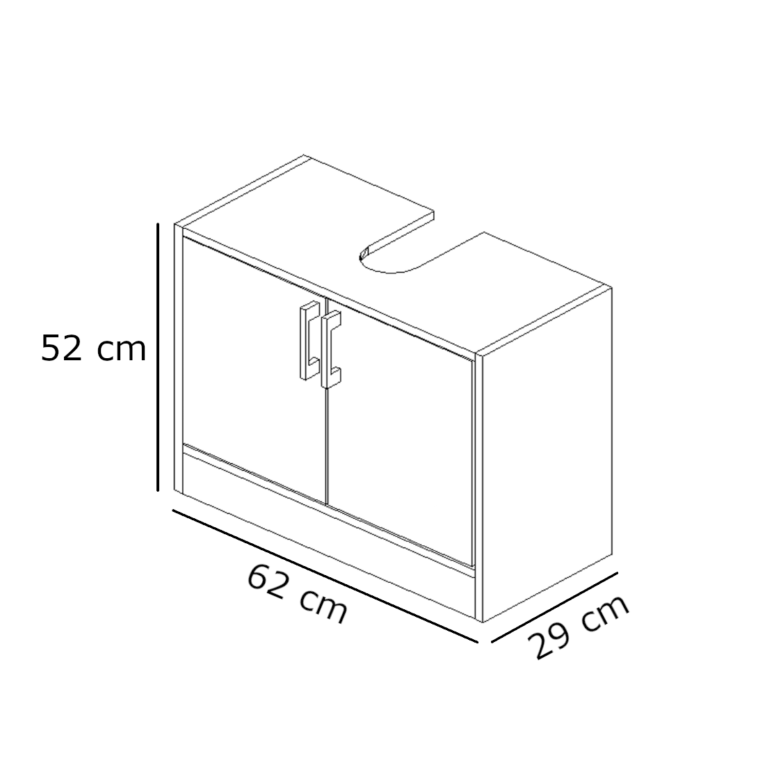 A Carol 2 ajtós alsószekrény ideális választás a fürdőszobába, ha a mosdó alatti teret szeretnéd praktikusan kihasználni. A szekrény felső lapja szifonkivágással készült, így könnyen illeszthető a mosdó alá. A két ajtó mögött zárt, polc nélküli tárolóhely biztosít helyet a tisztítószereknek, törölközőknek vagy egyéb fürdőszobai kellékeknek.
