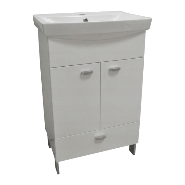 Toscana alsószekrény mosdóval fehér színben. Mérete 55x85x40 cm. 2 ajtó, 1 fiók. Laminált forgácslap, CARINA 55 cm kerámiámosdóval, lapra szerelhető.