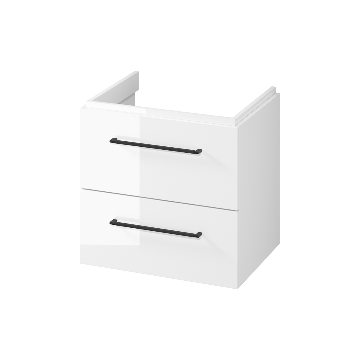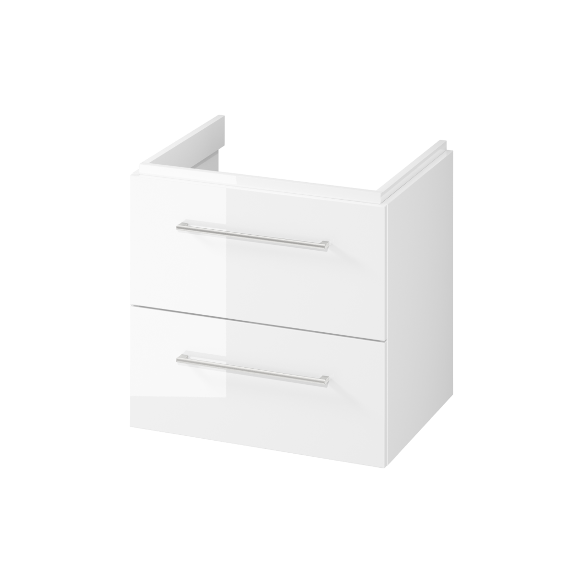 Cersanit Larga 59,4×57,2×44,4 cm fehér, lakkozott MDF mosdó alsószekrény – két fiókkal, összeszerelt kivitelben, fogantyú és a képeken látható további tartozékok nélkül.