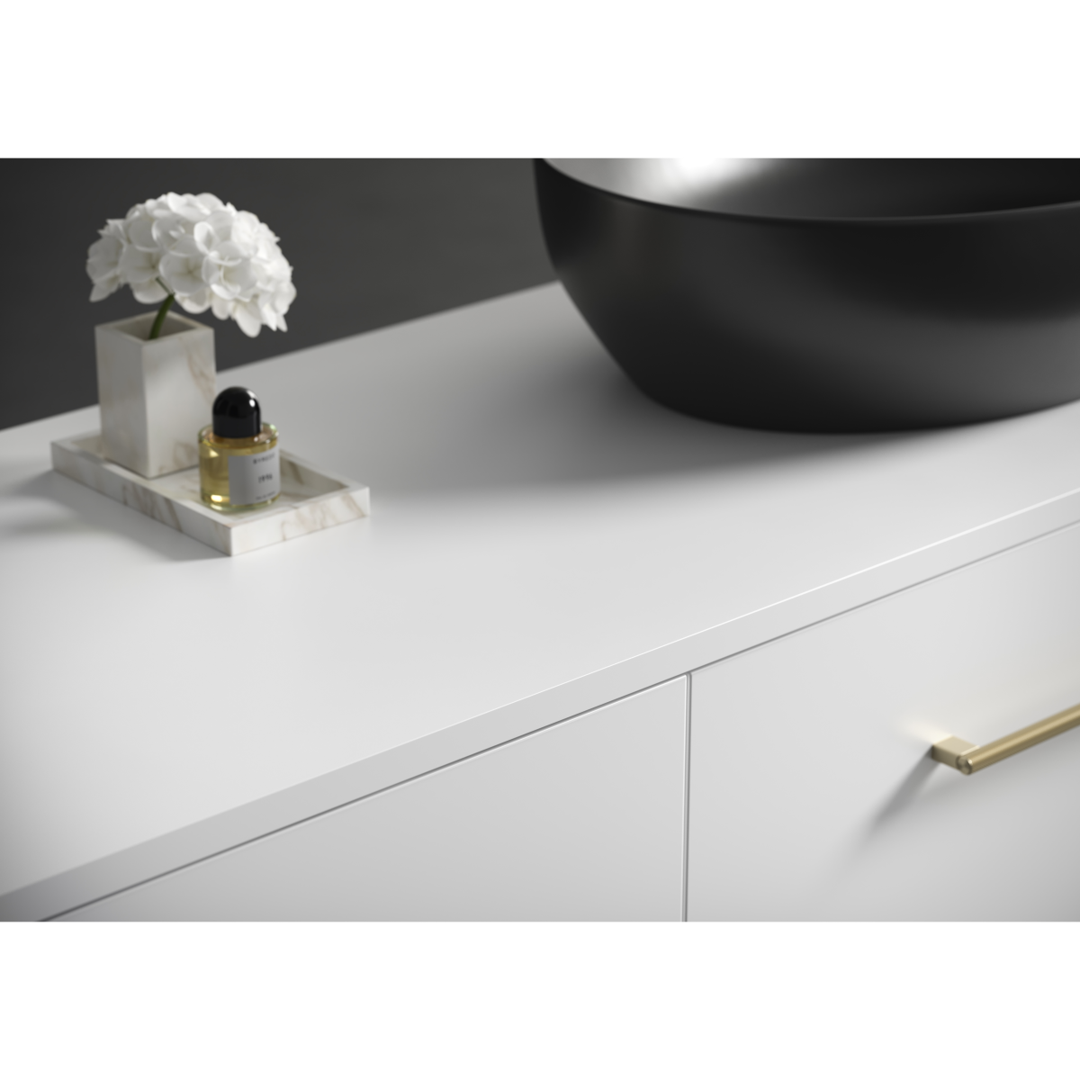 A lap felületén nincsenek előre kialakított furatok vagy kivágások, így teljes mértékben személyre szabható: a mosdó és csaptelep elhelyezése a saját igényeidhez igazítható.