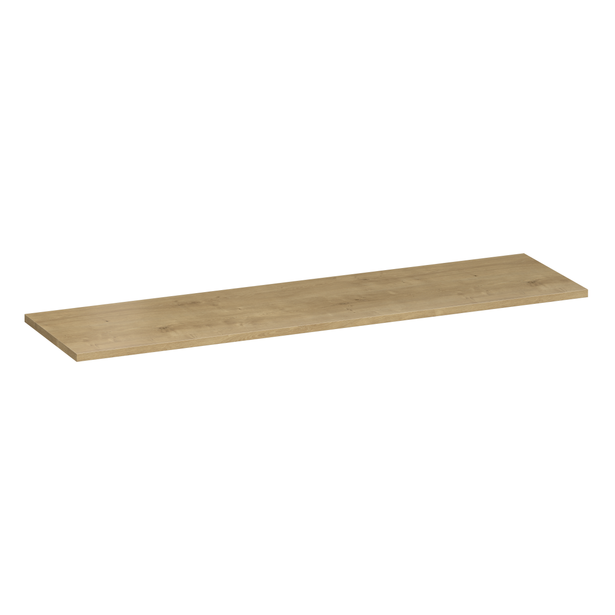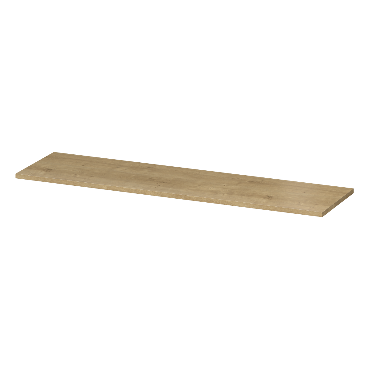 Cersanit Larga/City 180×2,5×45 cm tölgy színű laminált forgácslap mosdólap – furatok és kivágások nélkül, a Cersanit Larga és City bútorcsaládokhoz illeszkedő kivitelben.