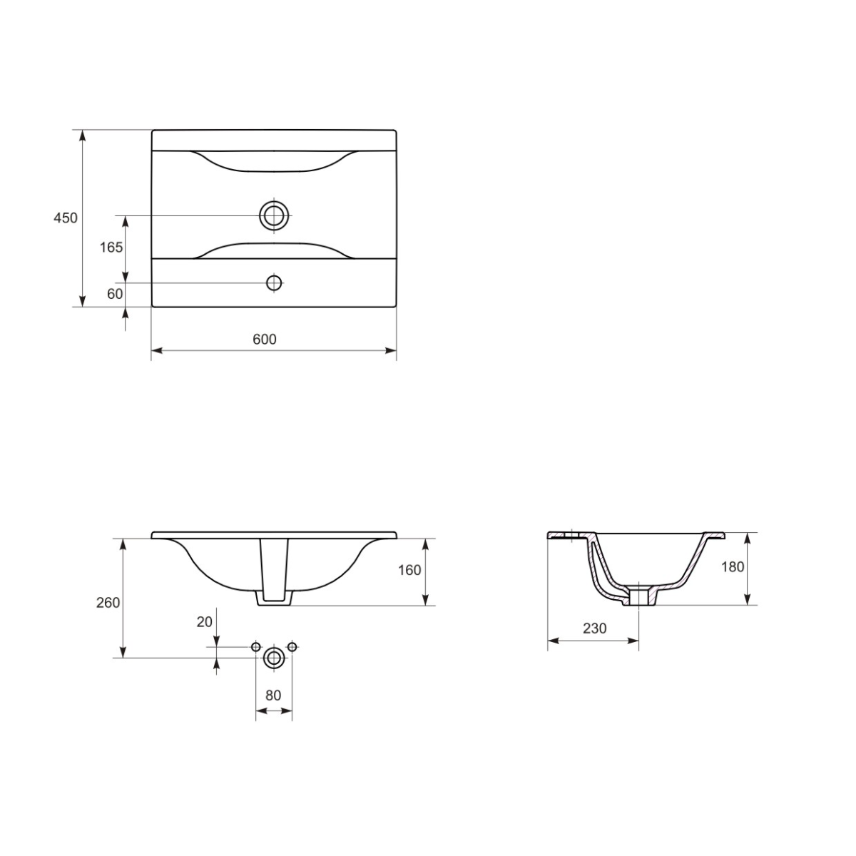 1× Vékony kerámiamosdó (csaplyukkal, túlfolyóval)