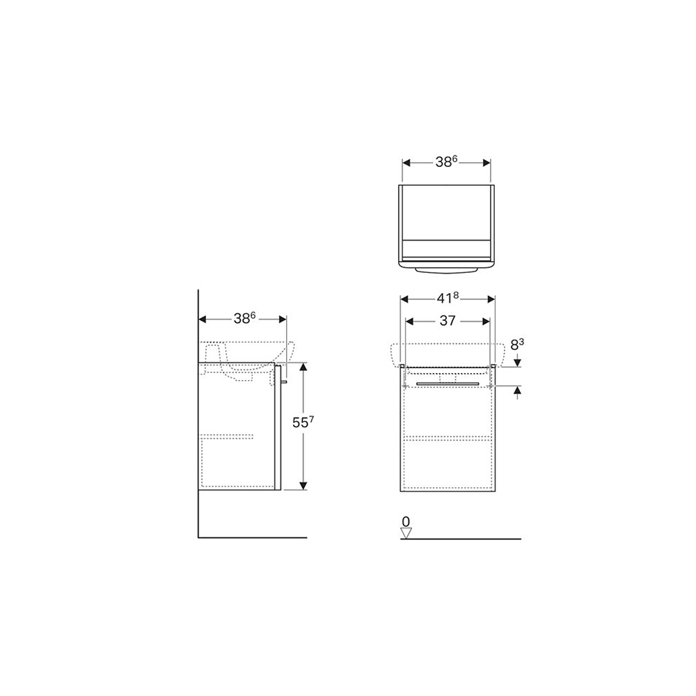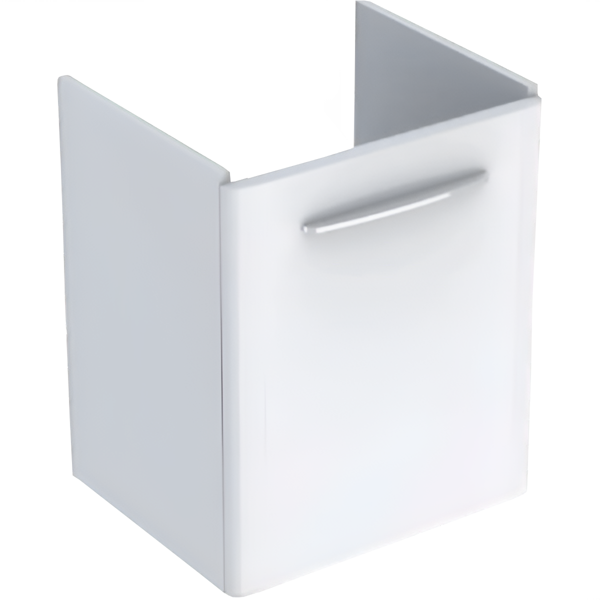 Geberit Selnova fehér 49,3 cm x 55,7 cm x 42,6 cm-es falra szerelhető, egyajtós alsószekrény – farostlemezből, polcos kivitelben, csillapítómechanizmussal ellátott ajtóval, nem lapraszerelt állapotban