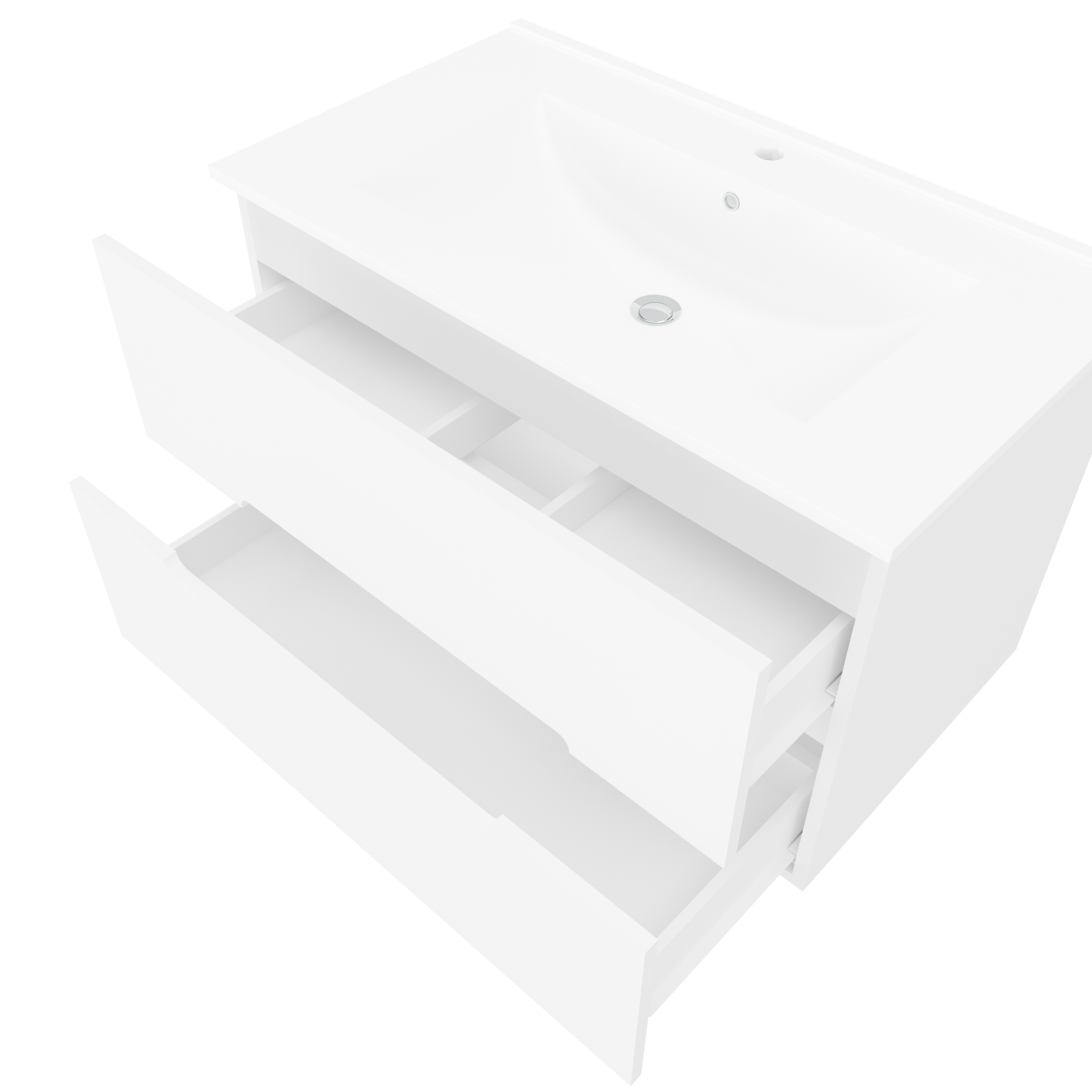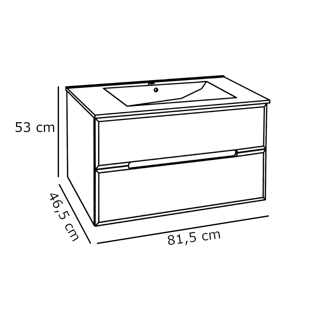 A 81,5 cm széles alsószekrény két csillapított záródású fiókkal rendelkezik, amelyek halk és kényelmes működést biztosítanak. A nagyobb kerámia mosdó higiénikus és könnyen tisztítható, így ideális választás közepes és nagyobb fürdőszobákba is.