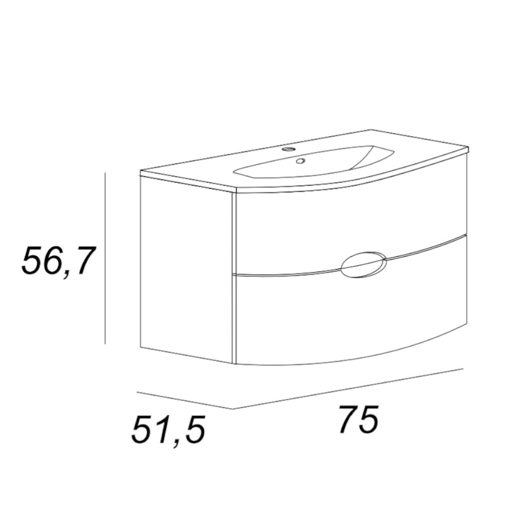 Bútor mérete: 75 cm x 56,7 cm x 51,5 cm