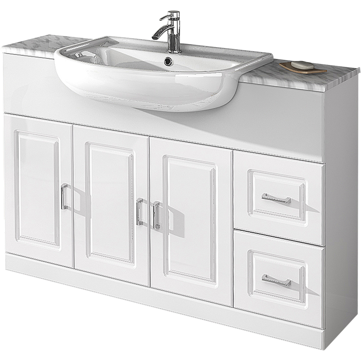 Elegáns, márvány kivitelű mosdólap, amely a Paola rendszerhez illeszkedik. Letisztult megjelenése egységesíti a fürdőszobabútort, és harmonikusan kiegészíti a szekrény vonalait.