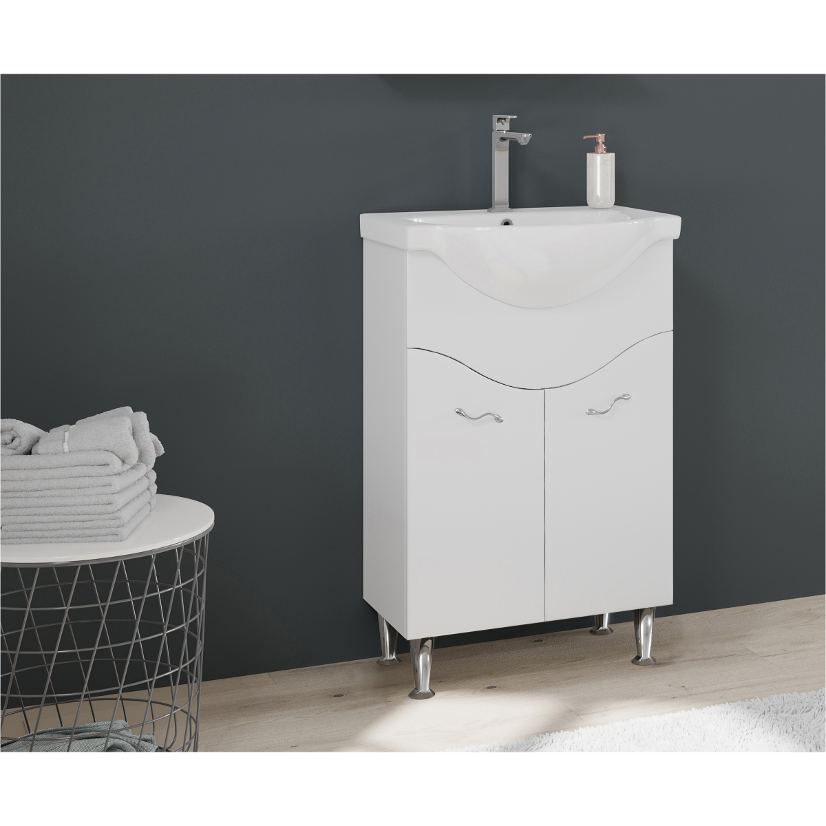 A Rimini 55 alsószekrény kerámia mosdóval praktikus választás, ha rendezetten szeretnéd tárolni a fürdőszobai kellékeket.