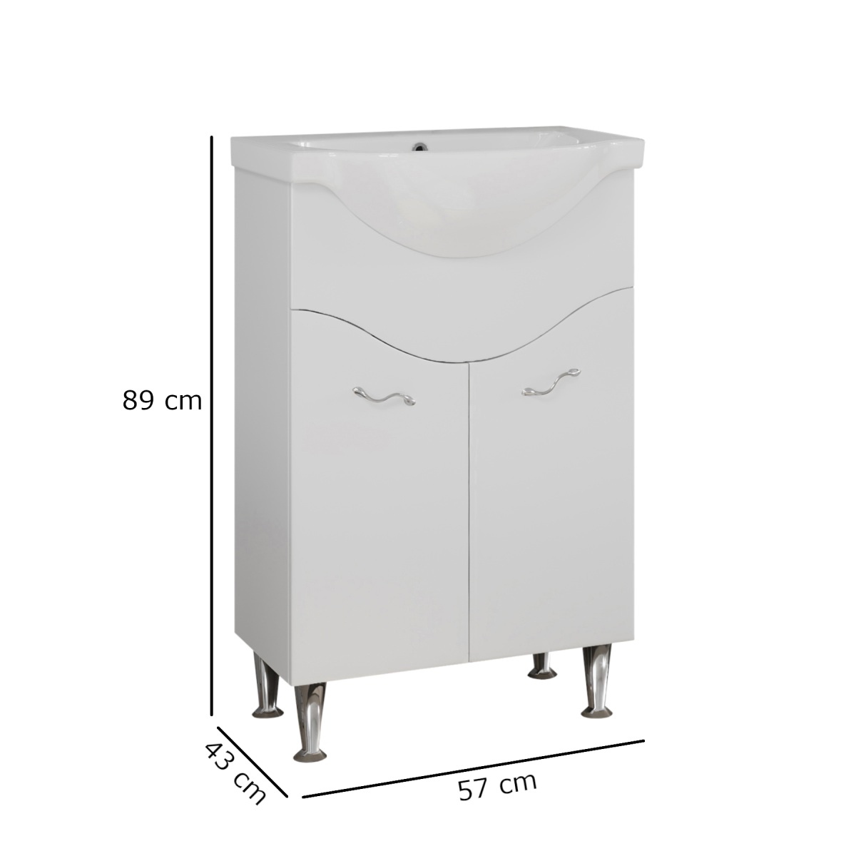 Letisztult, fehér színével és modern kialakításával harmonikusan illeszkedik a legtöbb fürdőszobai enteriőrbe. Az alsószekrényhez tartozó kerámiamosdóval együtt a termék mérete: 89 cm x 57 cm x 43 cm, így kényelmes használatot biztosít a mindennapok során.