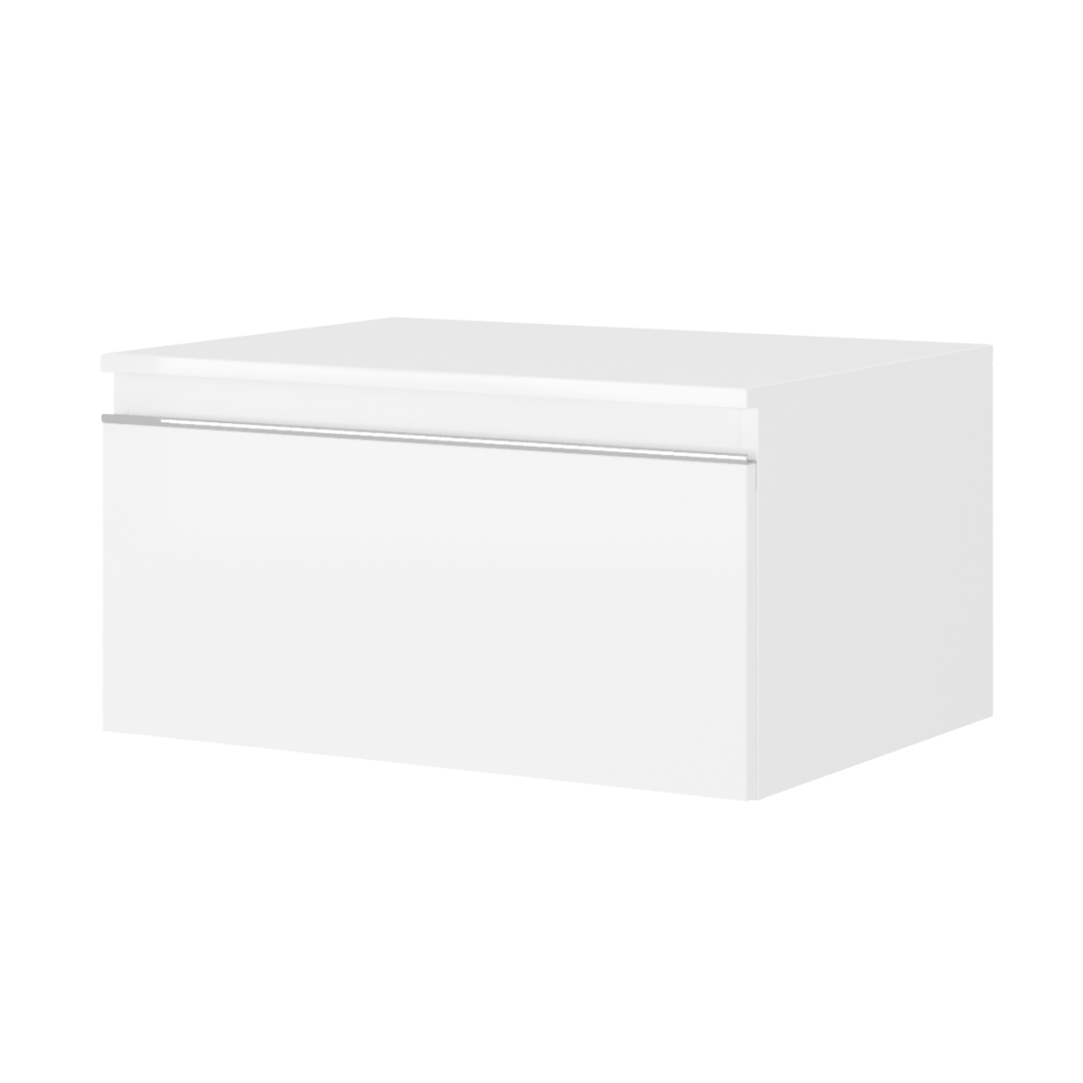 A Linea függesztett alsószekrény letisztult formavilágával és magasfényű fehér felületével modern, elegáns hangulatot kölcsönöz a fürdőszobának.