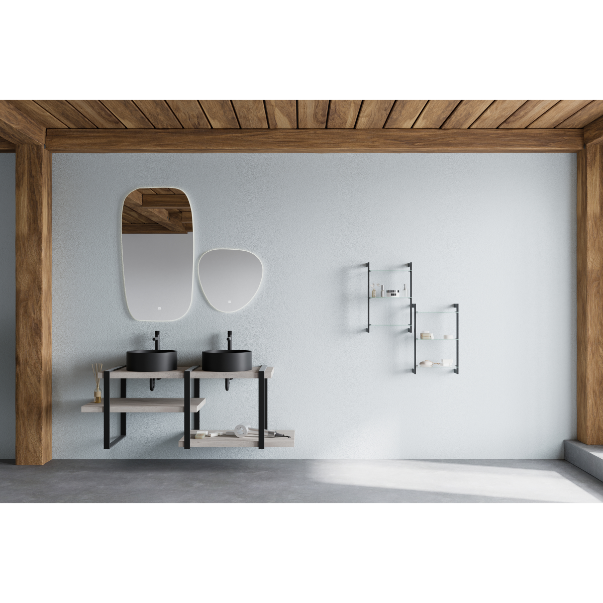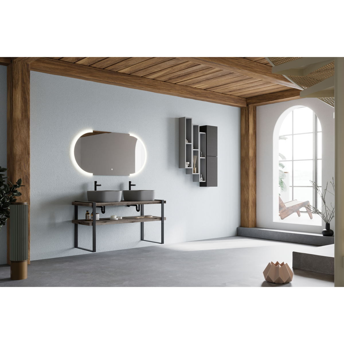 Letisztult, antracit színű felülete könnyen illeszkedik különböző munkalapokhoz és mosdókagylókhoz, így egységes megjelenést biztosít. A keret méretezése a tervezést is megkönnyíti, a csomagban található rögzítőcsavarok pedig segítik a beépítést.