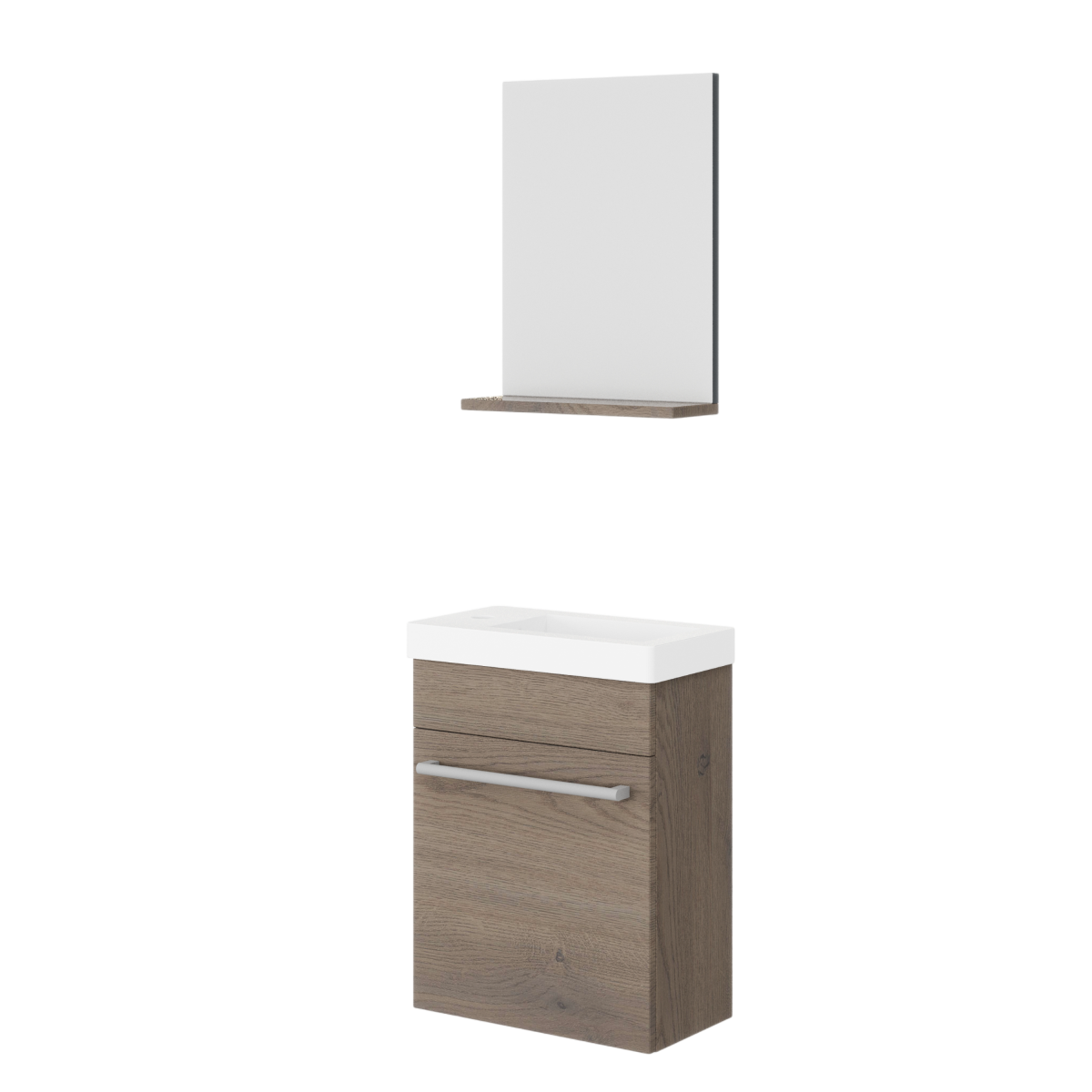 A Savini Perla-N függesztett alsószekrény mosdóval kompakt és jól kihasználható megoldás kisebb fürdőszobákba vagy vendégmosdókba. A 42 cm széles kivitel kifejezetten helytakarékos, miközben a dió szín melegebb, karakteresebb megjelenést ad a térnek. A körbezománcozott kerámia mosdónak köszönhetően jobbos és balos beépítésre is alkalmas, így könnyebben illeszthető a meglévő kiállásokhoz.