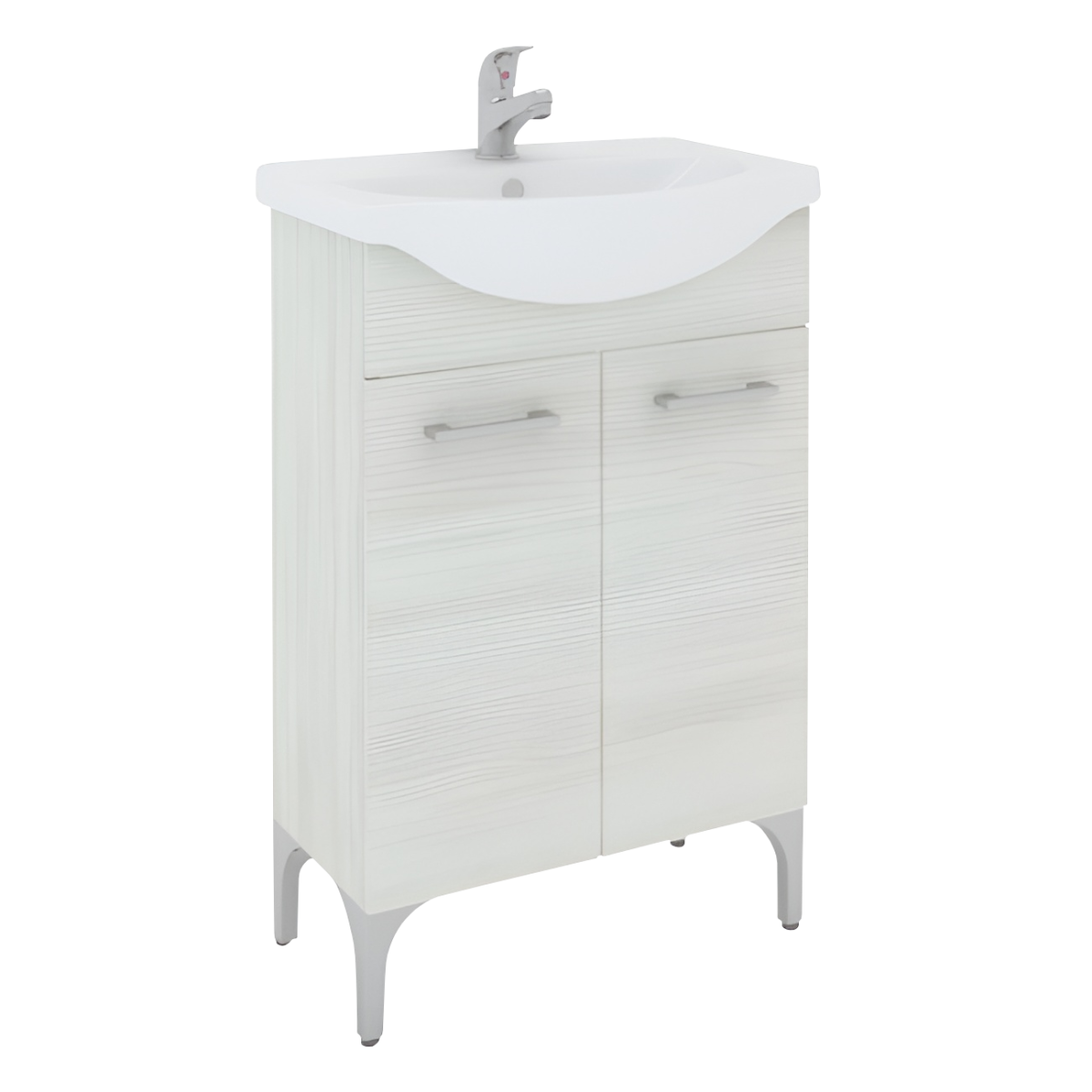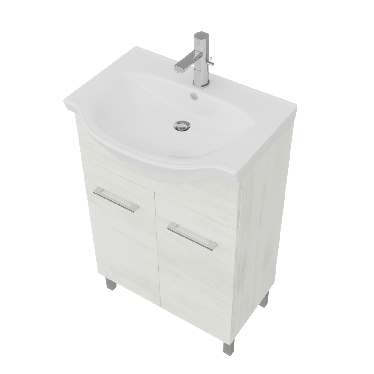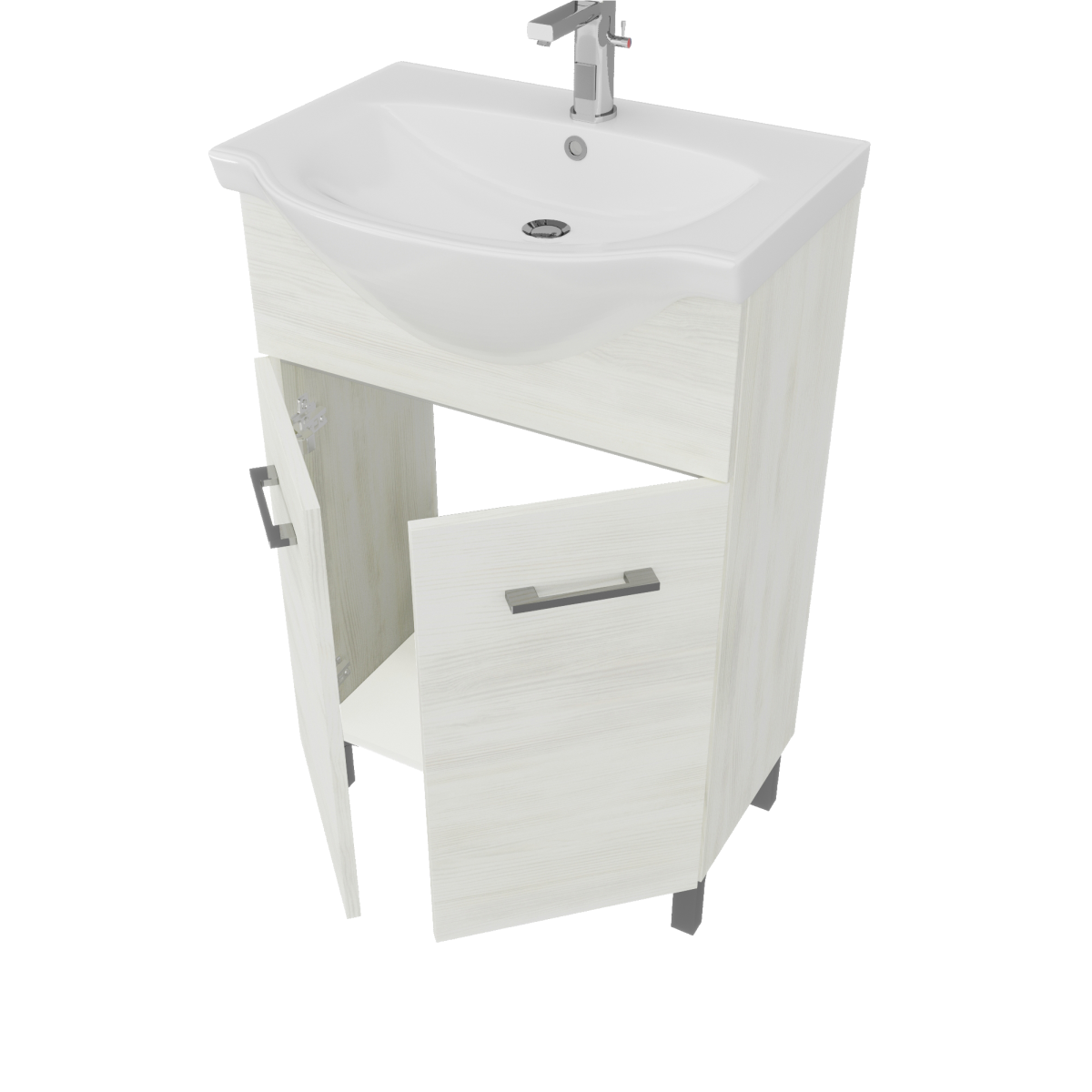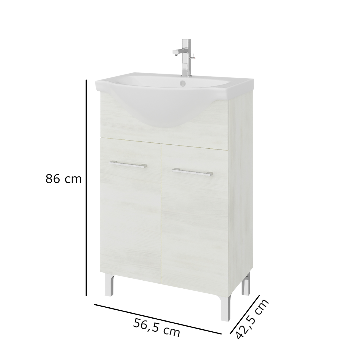 A szögletes, fehér mosdó és az egyenes vonalvezetés modern, rendezett összhatást ad. Kompakt méretének köszönhetően kisebb helyeken is kényelmesen elfér, mégis elegendő pakolóhelyet kínál. Mindennapi használatra tervezett, praktikus választás felújításhoz és új építéshez egyaránt.