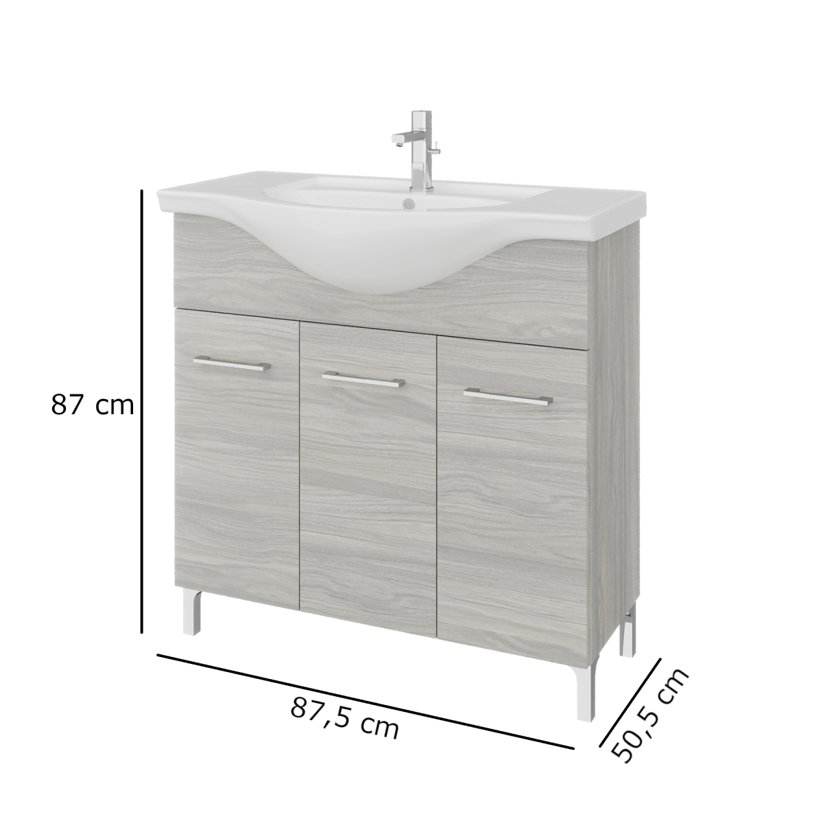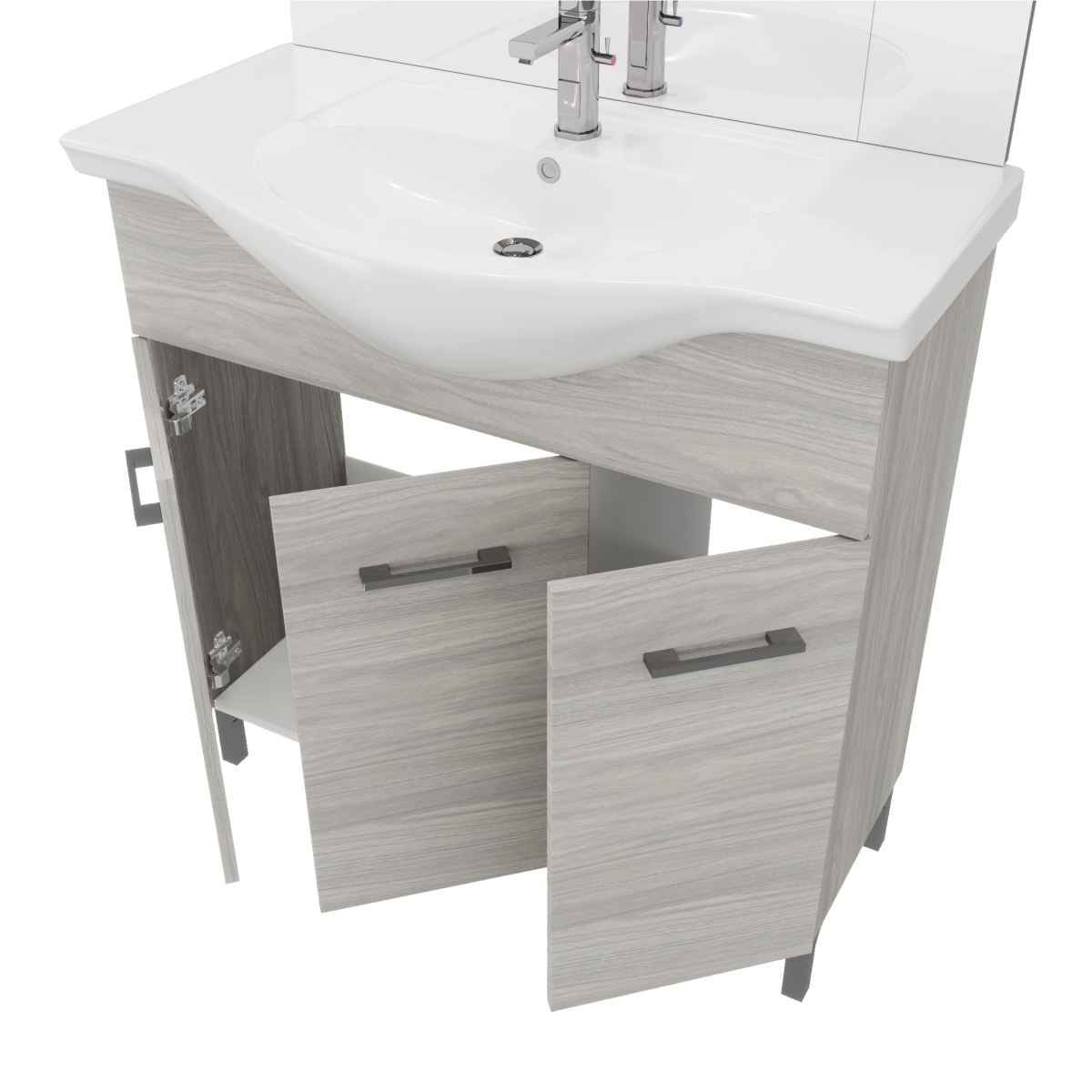 Az álló kivitel stabil elhelyezést tesz lehetővé, a három ajtó mögötti belső tér pedig átlátható tárolási lehetőséget kínál a napi használatú eszközöknek. Közepes mérete révég tökéletes választás közepes és nagyobb méretű, modern és hagyományos fürdőszobákhoz.