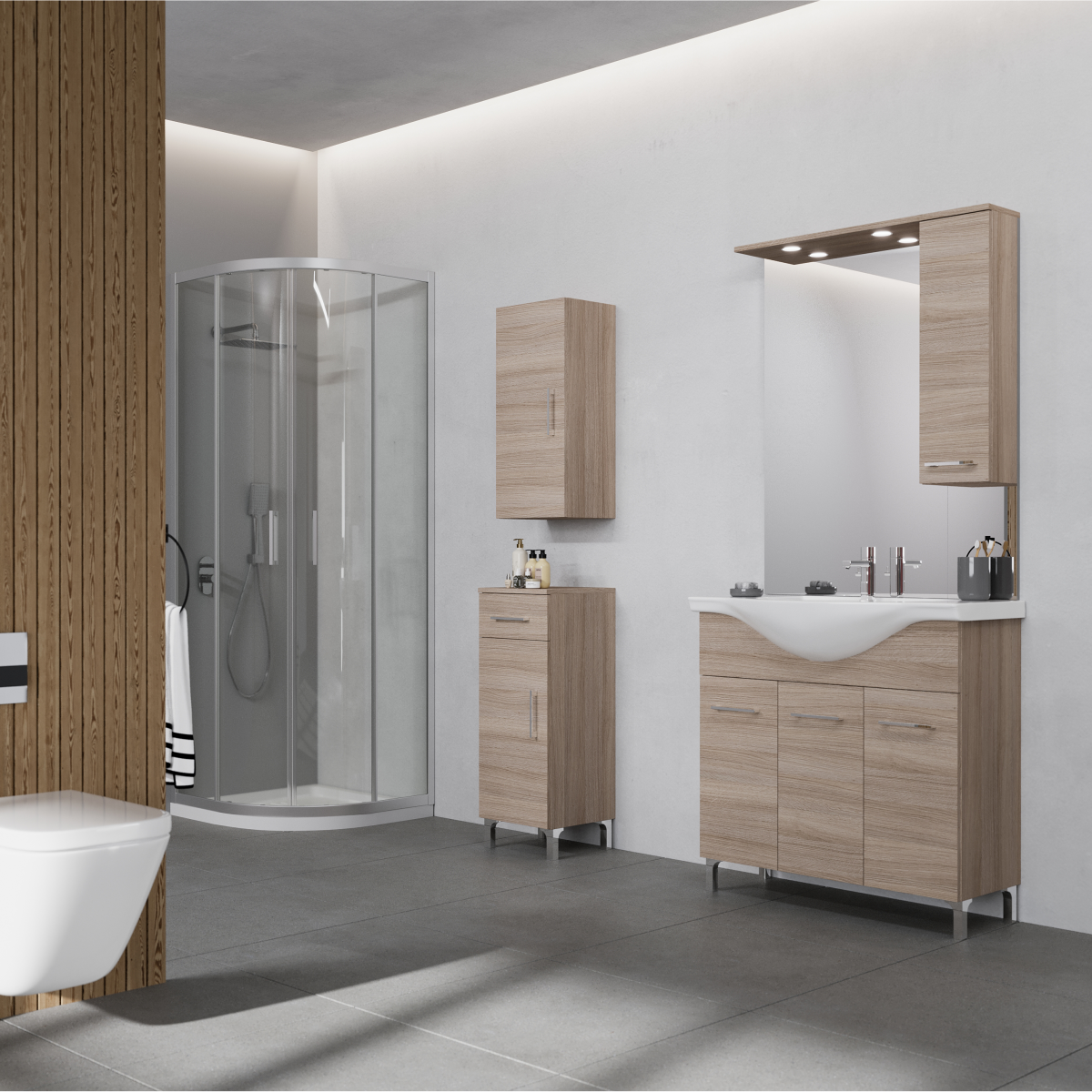 🛁 Közepes méretű fürdőszobákba, ahol fontos a rendezett tárolás
