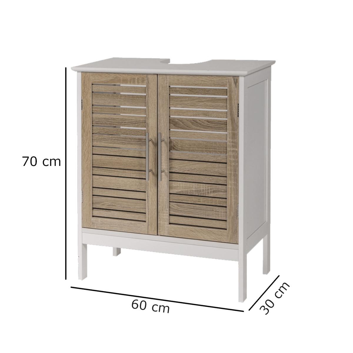 A Stockholm álló alsószekrény letisztult, skandináv stílusú kialakításával természetes megjelenést visz a fürdőszobába. Fehér vázát és barna ajtófrontjait a bambusz és farost anyag kombinációja teszi melegebbé, harmonikusabbá. A szekrény 70 cm magas, 60 cm széles és 30 cm mély, így ideális választás a mosdó alá vagy mellé, ha praktikus tárolóhelyre van szükséged.
