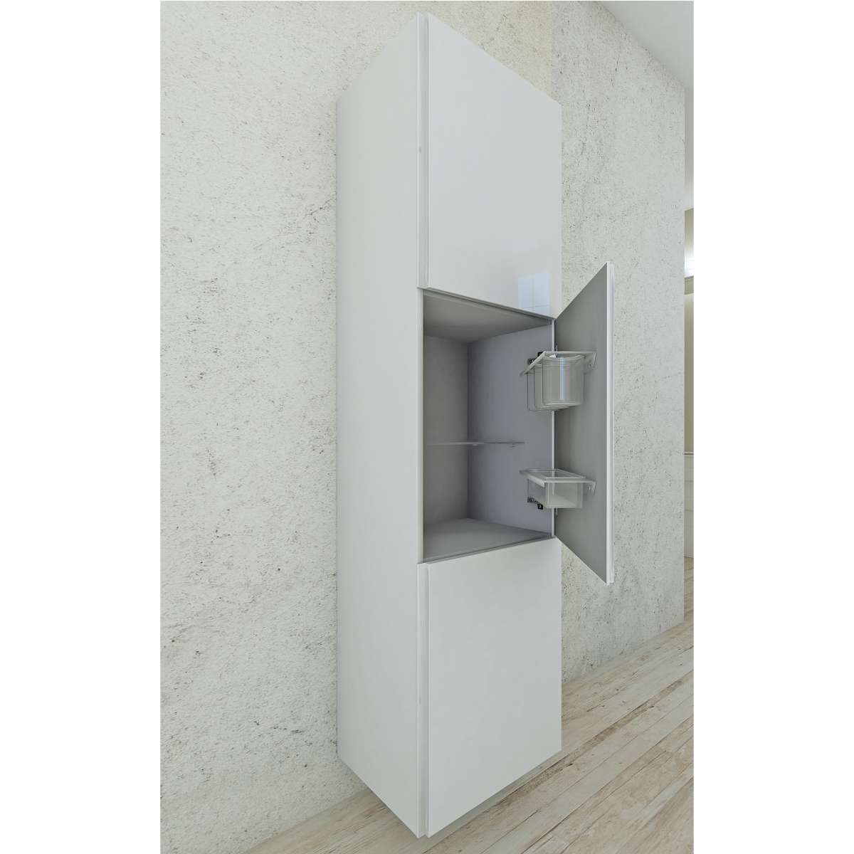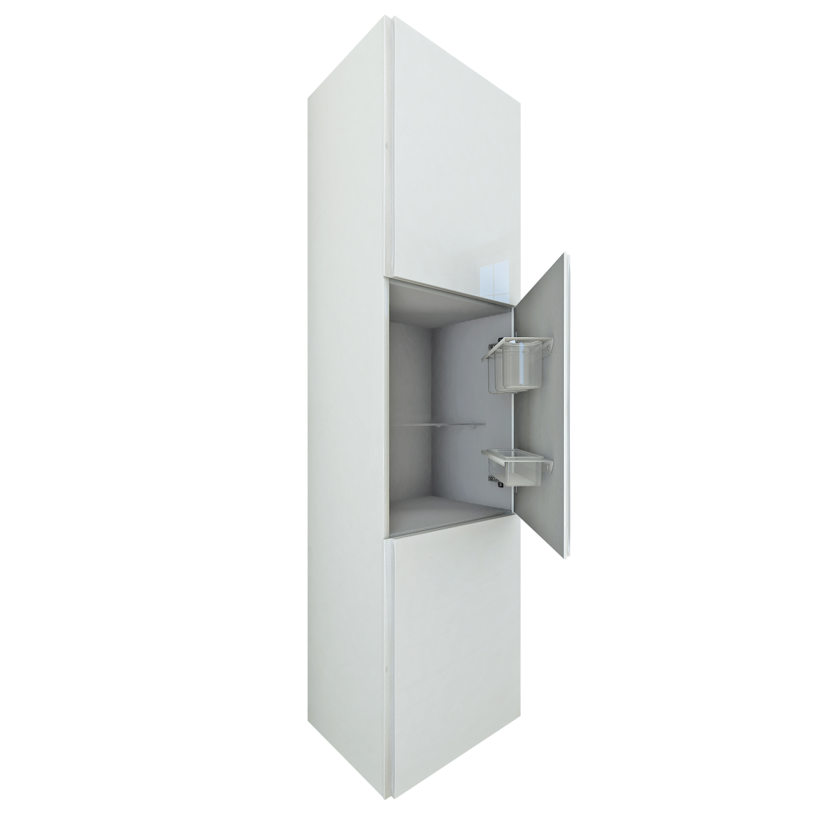 Keskeny, mégis tágas tároló a fürdőbe. A letisztult fehér front könnyen illeszkedik bármely stílushoz, a több rekesz pedig segít rendben tartani a mindennapi holmikat.