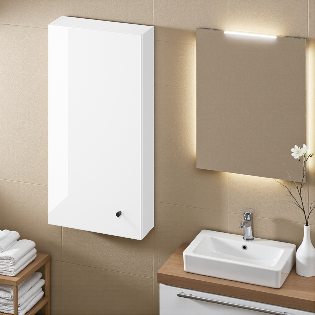 A szekrény összeszerelt állapotban kerül kiszállításra. Az ajtó nyitásirányát jobbos vagy balos beállítással lehet megválasztani, mielőtt a fogantyú helyét kifúrnád. Stabil, teherbíró falfelületre javasolt rögzíteni.