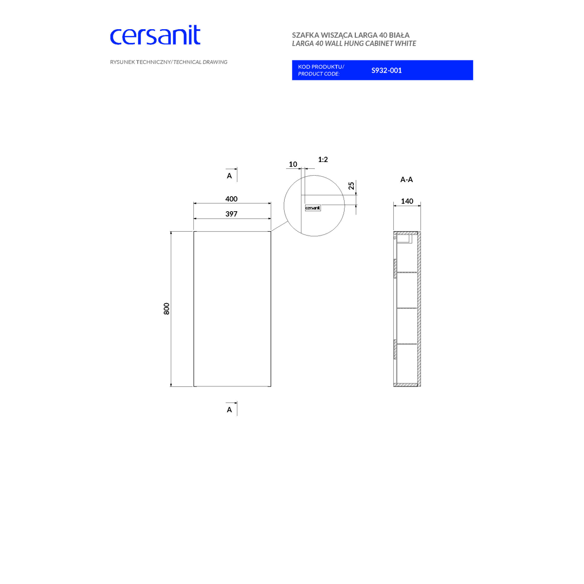 - Cersanit Larga fehér 40 cm x 80 cm x 14 cm-es felsőszekrény
