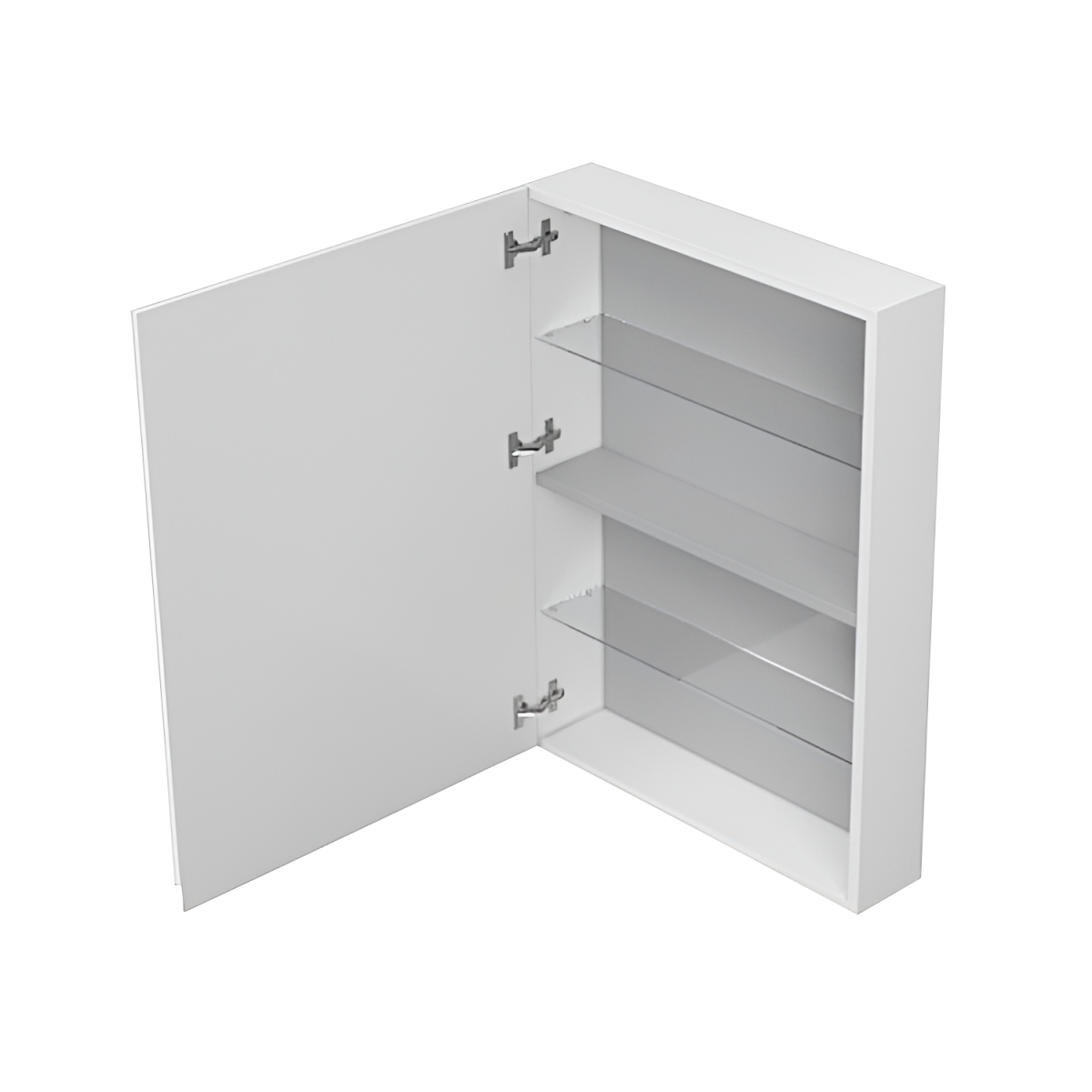 A szekrény MDF anyagból készült, lakkozott felülettel, amely nemcsak fényes, modern megjelenést biztosít, hanem a párás környezetben is ellenállóbb és könnyen tisztítható. Az ajtó nyitásiránya tetszés szerint megváltoztatható, így jobbos vagy balos kivitelben is felszerelhető – ez különösen hasznos kisebb helyiségekben, ahol fontos az optimális helykihasználás.