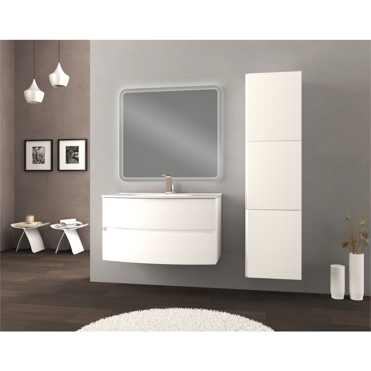 A mélyített fogantyú modern megjelenést és kényelmes nyitást ad, a függesztett kialakítás pedig szellős hatást és könnyebb takarítást biztosít.