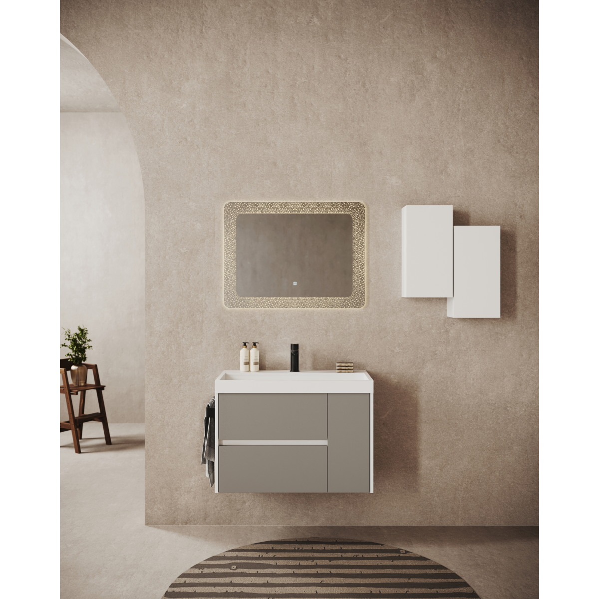 Egyajtós, falra szerelhető kivitelének köszönhetően helytakarékos megoldást kínál a mosdó fölé vagy mellé szerelve. Az ajtó becsapódásgátlóval ellátott, így záródása halk és kényelmes.