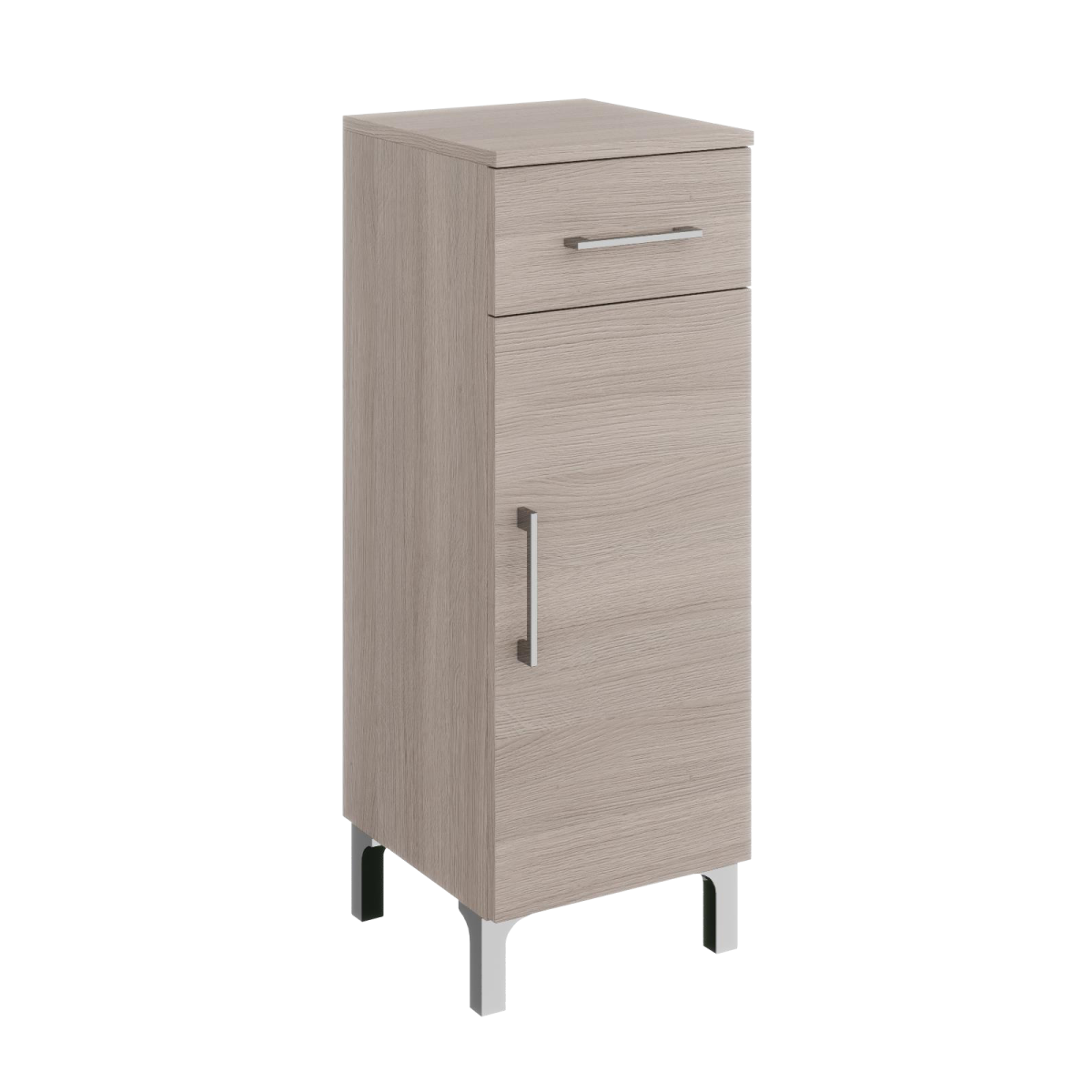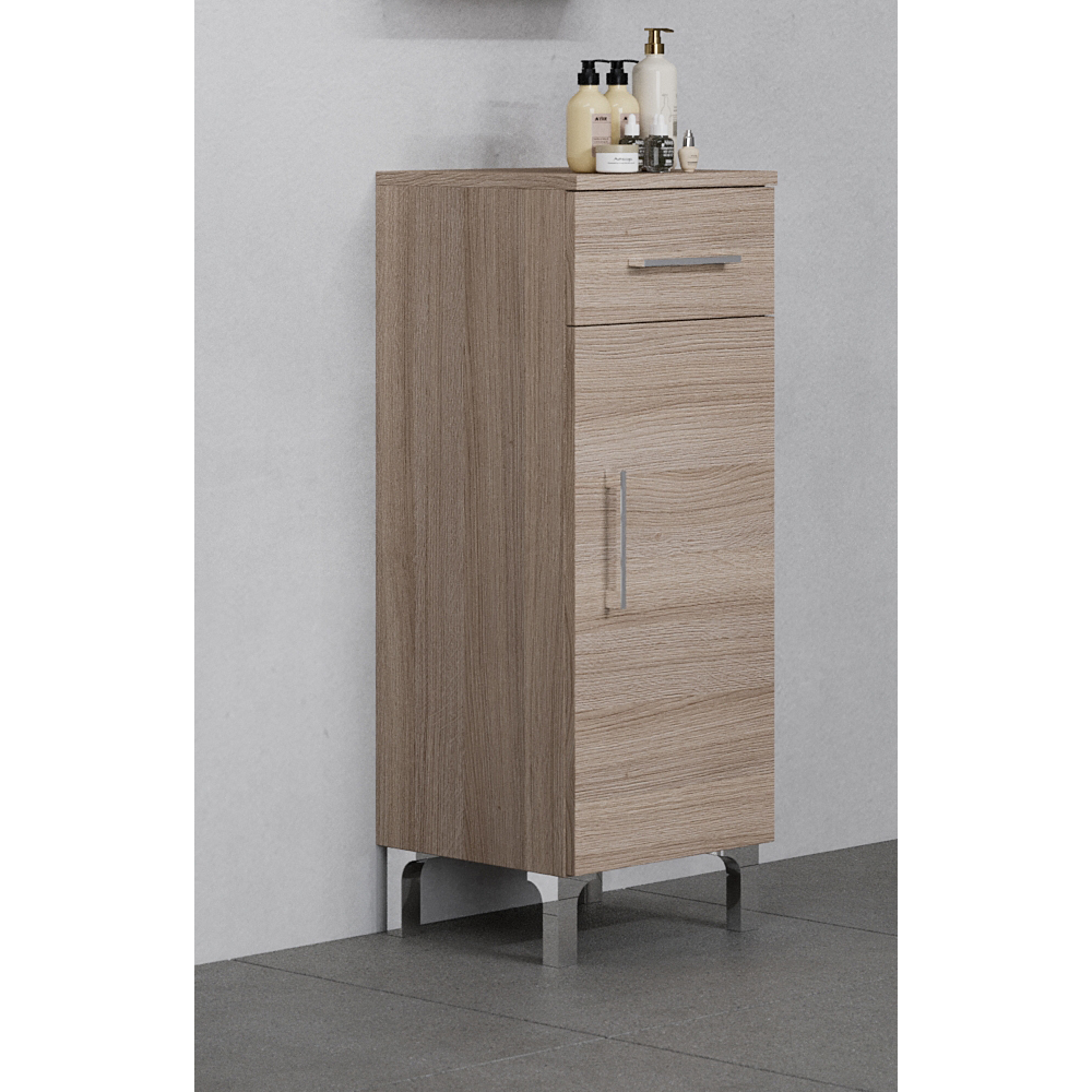A Rubino alacsony szekrény elegáns barna színével és kompakt kialakításával tökéletes választás modern fürdőszobákba.