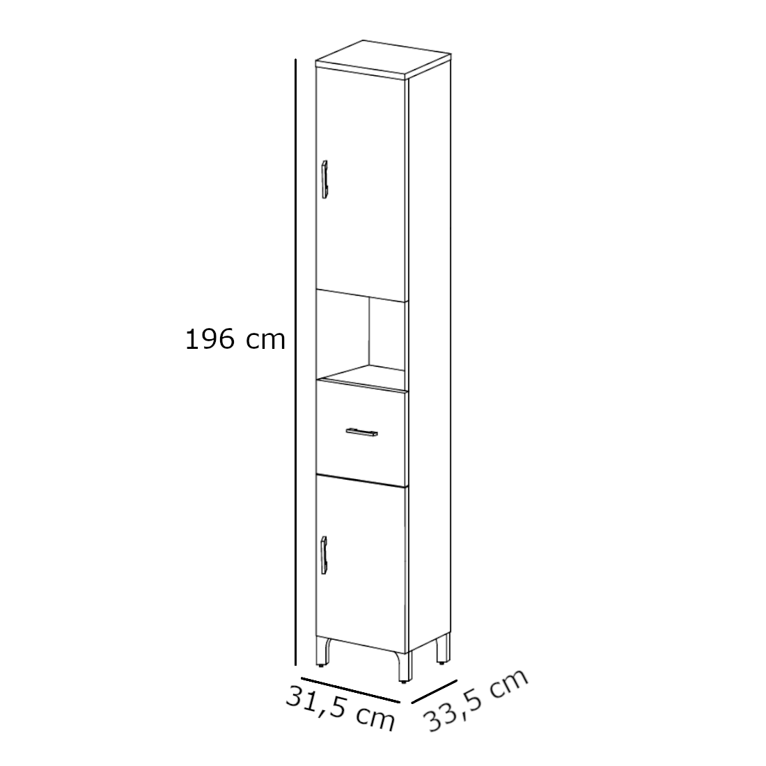 Két ajtóval, egy fiókkal és egy nyitott tárolóval rendelkezik, így többféle tárolási igényre is megoldást nyújt.