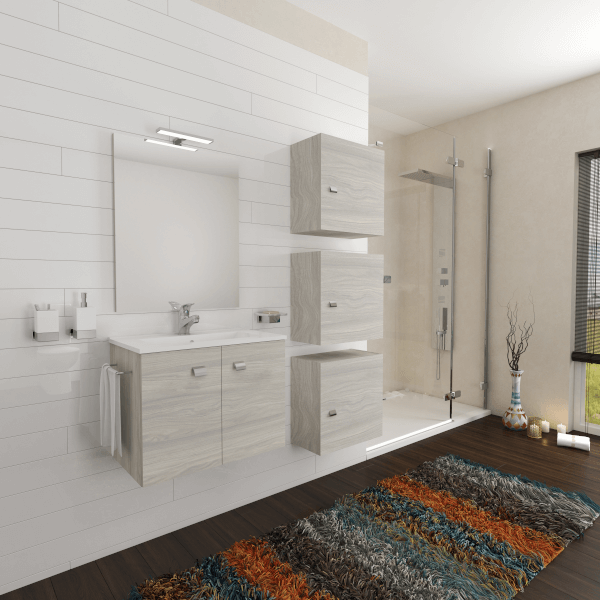 Fürdőszobai faliszekrény "Zaffiro", világos szürke színben, 45x45x15 cm-es méretben, jobbos.