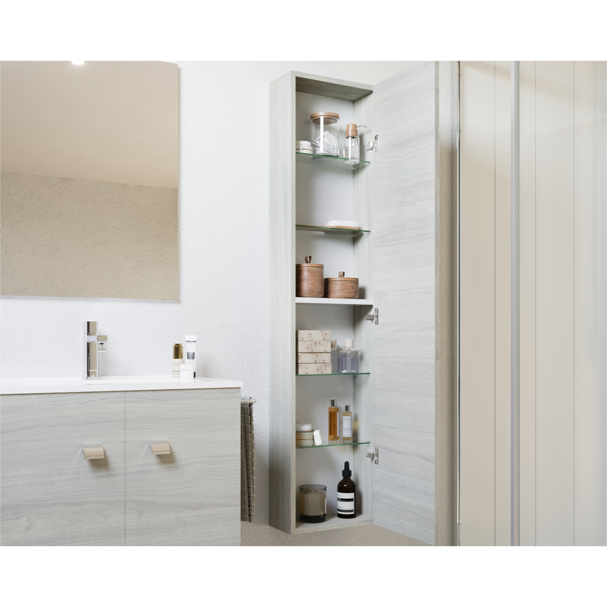 A gyártási technológiának és a designak köszönhetően ez a termék maximális kényelmet és funkcionalitást biztosít, így tökéletes választás egy modern fürdőszoba számára. A termék szerelési útmutatót tartalmaz. Anyag: az eleje és oldala forgácslap. A fali tartók (csavarok és tiplik) nem tartoznak a szállítási készletbe. Jobbra nyitható.