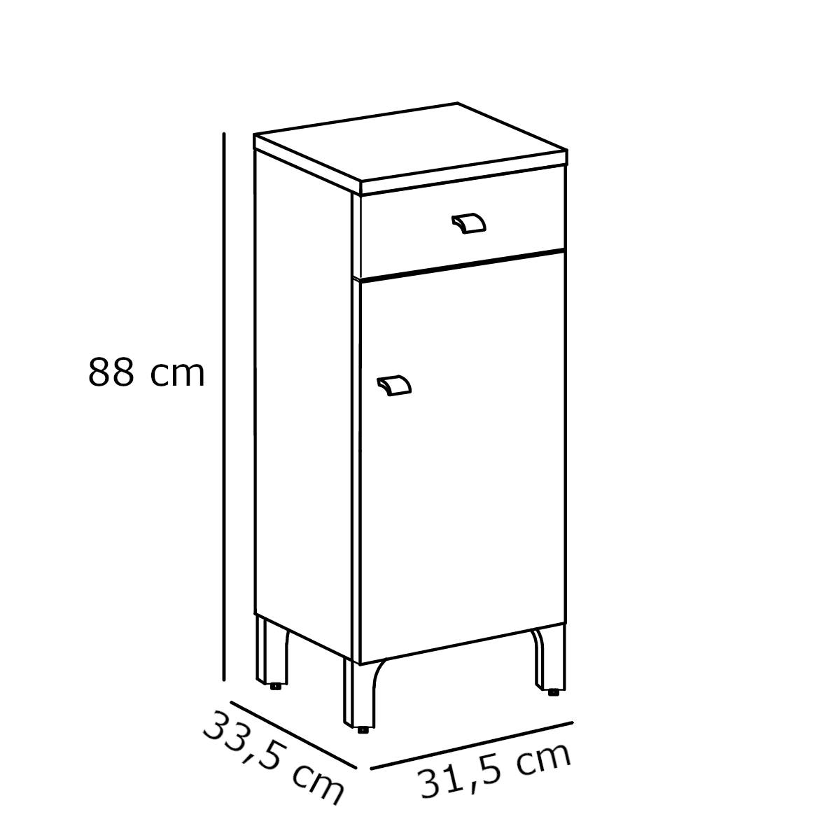 MDF vákuumpréselt frontjai időtálló megoldást kínálnak, miközben a csillapított záródású ajtó kényelmes, halk használatot biztosít. A belső elrendezés 1 üvegpolccal és 1 fiókkal segíti a rendszerezést, így a mindennapi fürdőszobai eszközök mindig kézközelben maradnak.