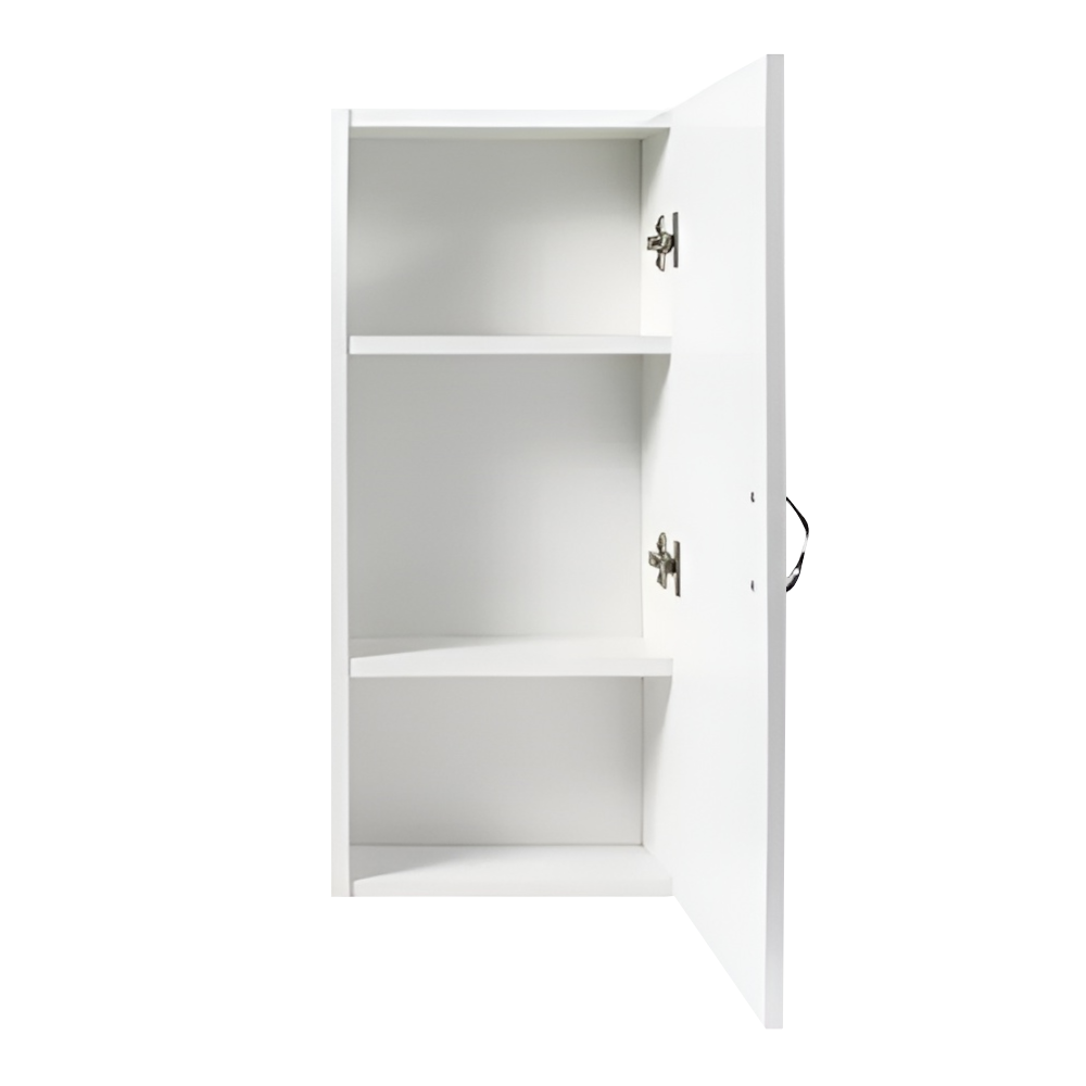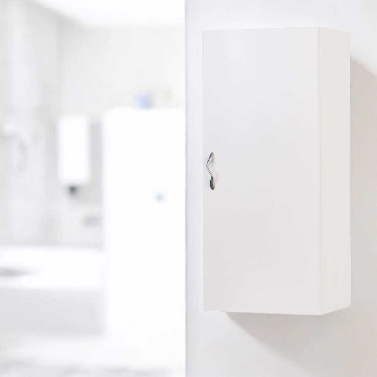 A Rimini faliszekrény letisztult, magasfényű fehér felülete világosabb hatást ad a helyiségnek, és könnyen illeszkedik modern vagy klasszikus fürdőszobákba is.