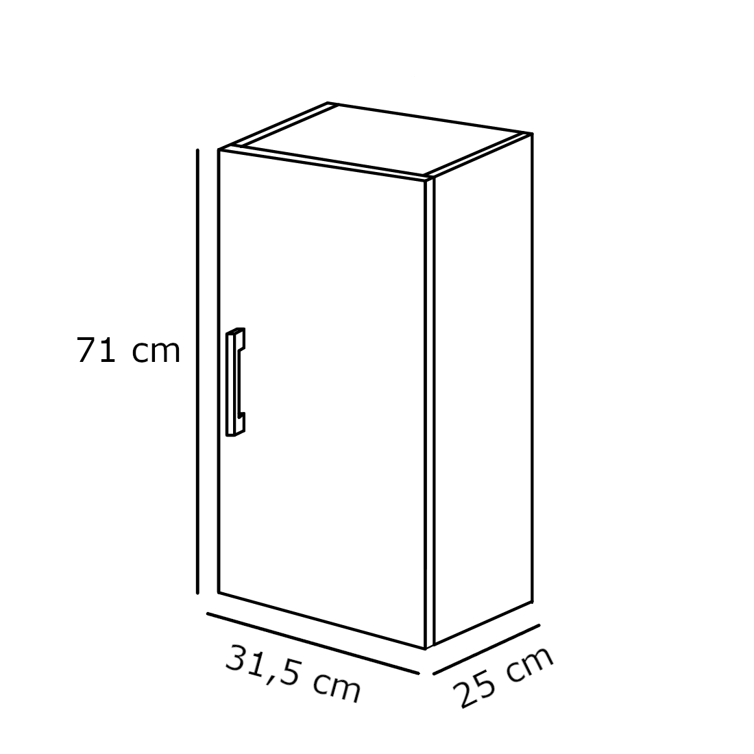 Az egyajtós kialakítás, valamint a jobbos vagy balos szerelhetőség lehetővé teszi, hogy bármilyen térbe kényelmesen beilleszthető legyen. Az ezüst színű fogantyú modern részletként emeli a bútor megjelenését.