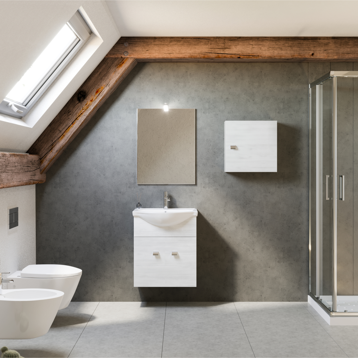 A Zaffiro fehér tölgy színű fürdőszobai faliszekrény modern, letisztult megjelenésével tökéletesen illeszkedik bármilyen fürdőszobai enteriőrbe.