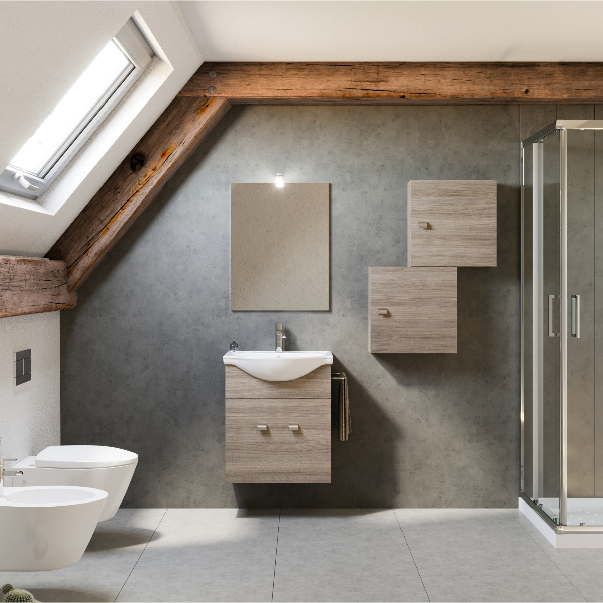 A Zaffiro barna tölgy színű fürdőszobai faliszekrény modern, letisztult megjelenésével tökéletesen illeszkedik bármilyen fürdőszobai enteriőrbe.