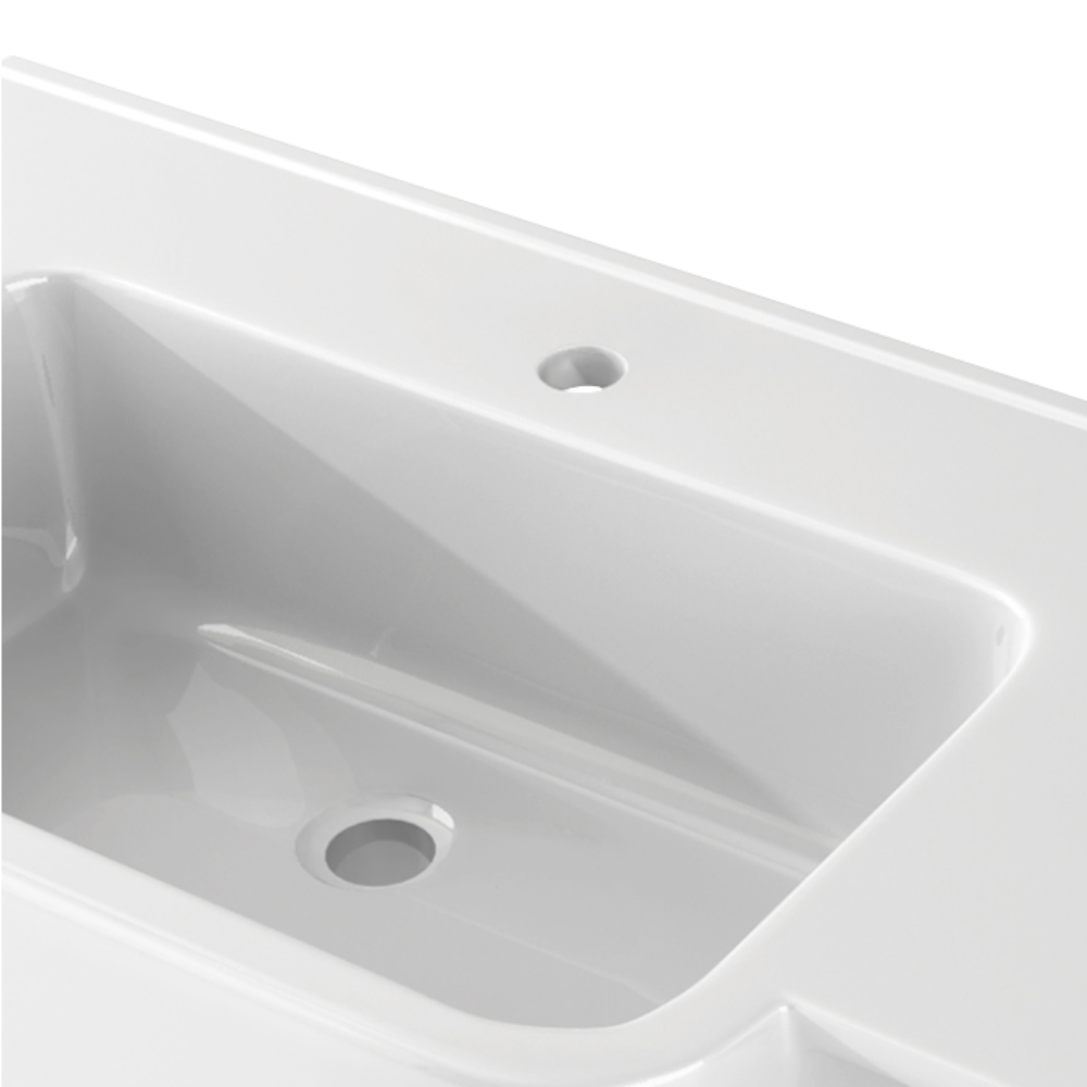 A fehér felület tiszta megjelenést ad, miközben az anyag tartós és egyszerűen tisztán tartható. A 100,5 cm-es szélesség és az oldalsó nagyobb tárolófelület különösen praktikus: kényelmes helyet biztosít a mindennap használt piperecikkeknek.