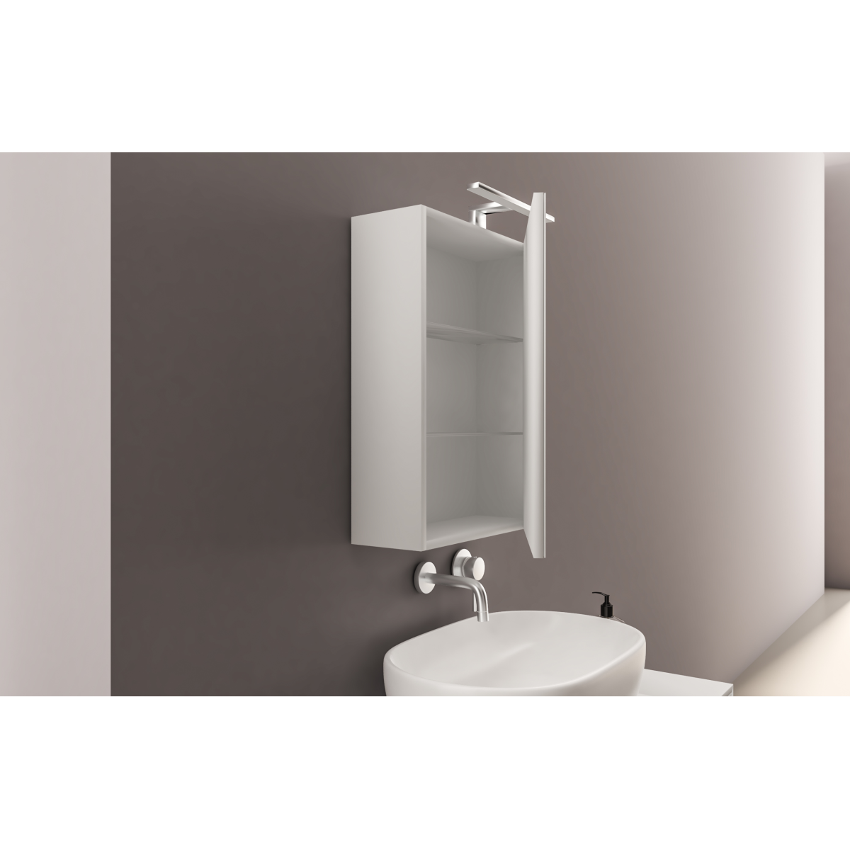 Az Aosta tükrösszekrény egyszerű, fehér színű kialakításával könnyen illeszkedik a modern és klasszikus fürdőszobákba is.