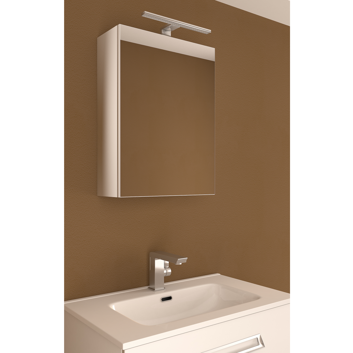 Az Aosta tükrösszekrény jó választás, ha visszafogott megjelenésű, praktikus és világítással ellátott tárolómegoldást keresel a fürdőszobádba.