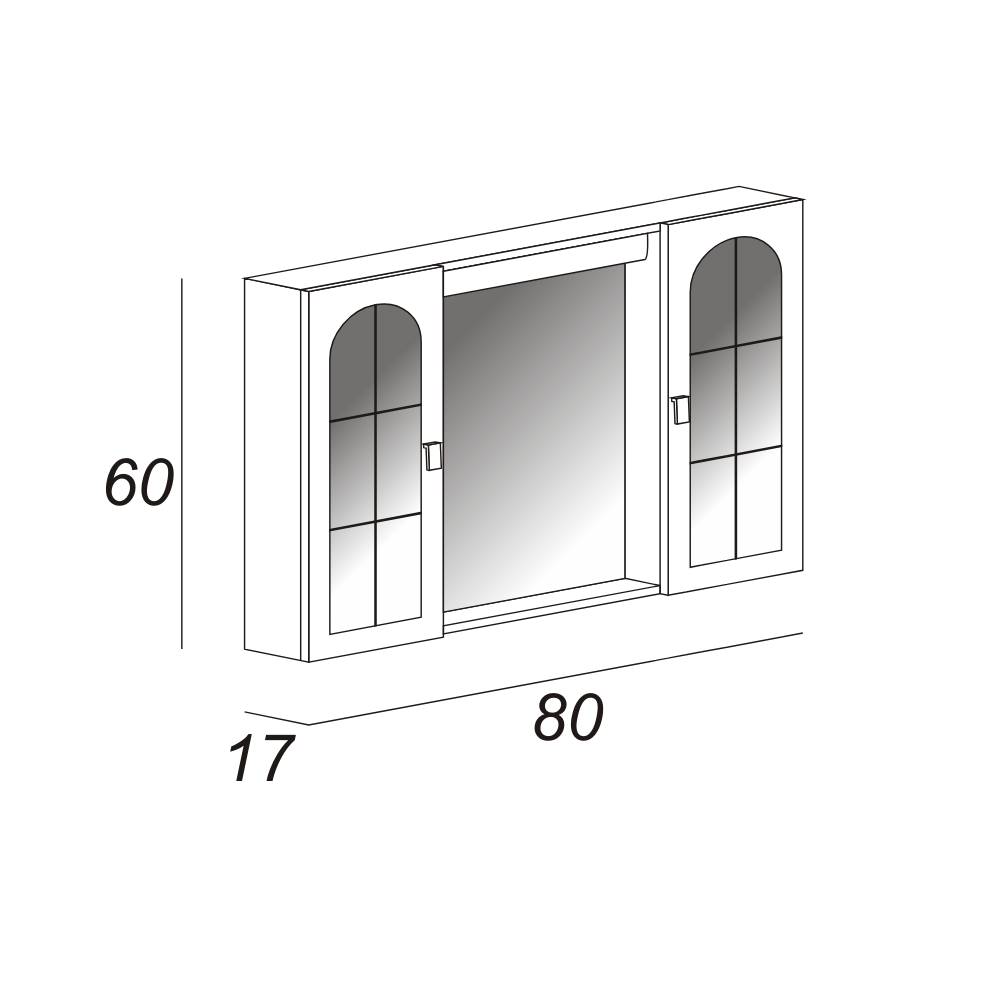 Két polcos szekrénnyel és egy tükörrel rendelkező, MDF anyagból készült tükrösszekrény, LED világítással. Alkalmas fürdőszobai kellékek helytakarékos tárolására. A középső tükör mérete 36x53 cm.